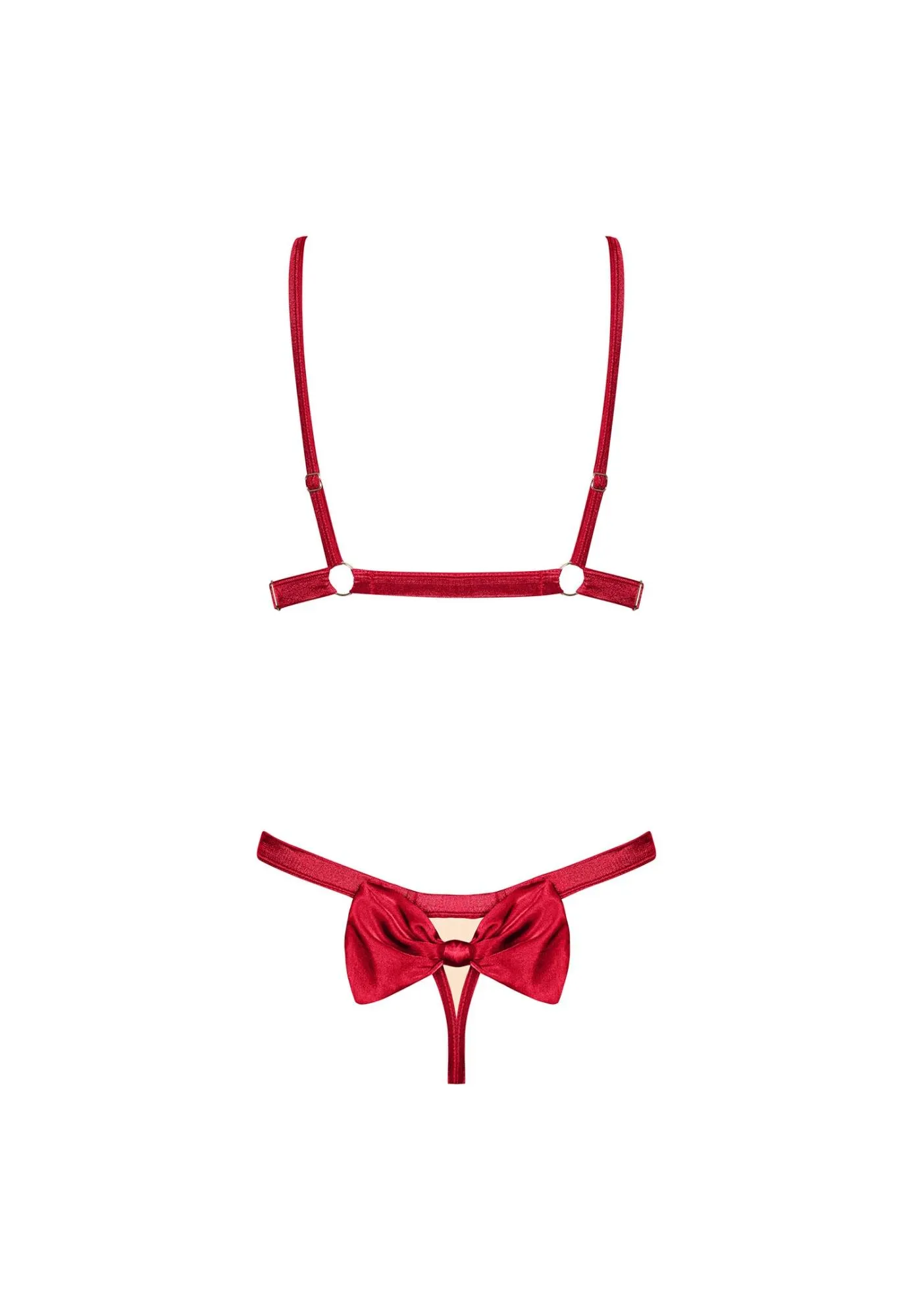 W połączeniu ze cielistymi stringami z wykończeniami w kolorze czerwieni, komplet bielizny Rubinesa to kwintesencja kobiecości. Złote łączenia dyskretnie błyszczą, dodając odrobiny luksusu, a satynowa tkanina podkreśla elegancję. To idealny wybór dla każdej kobiety, która pragnie czuć się wyjątkowo i pięknie.