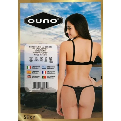 Komplet bielizny koronkowej Ouno - 2 części, biustonosz z głębokim dekoltem, L/XL, czarny