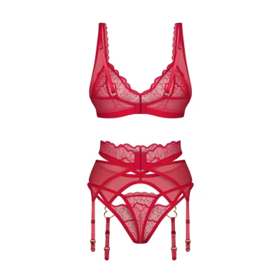 Zmysłowy komplet bielizny koronkowej Cupide Desir 3-częściowy L/XL w kolorze czerwonym