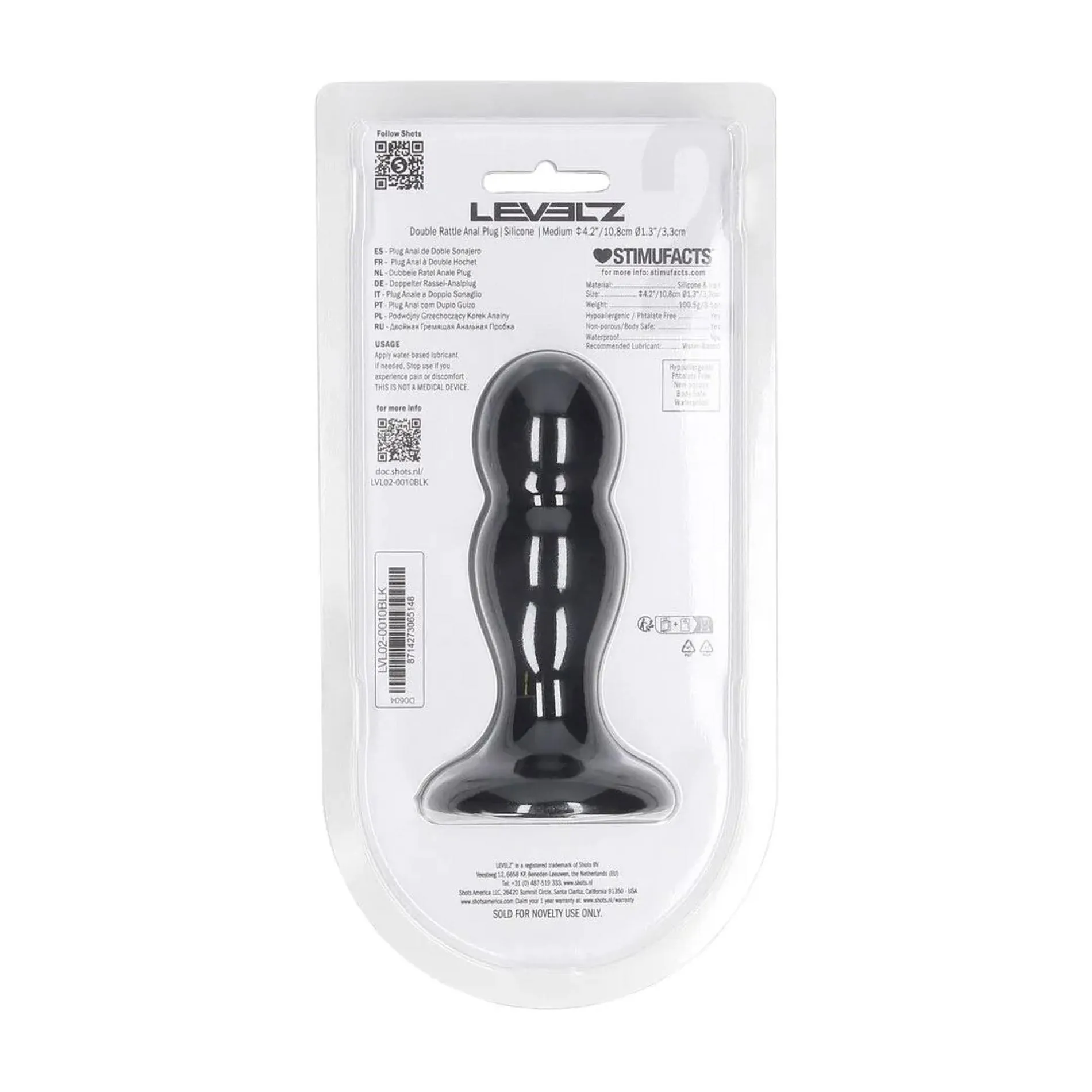 Zapakowany w eleganckie opakowanie typu clamshell, korek analny LEVELZ wyróżnia się swoim premium charakterem i stanowi świetny wybór dla osób, które chcą wzbogacić swoje doświadczenia analne o dynamiczny i responsywny element. Oferując podwójną stymulację i niezapomniane emocje, ten produkt stanie się nieodłącznym elementem każdej sesji intymnej.