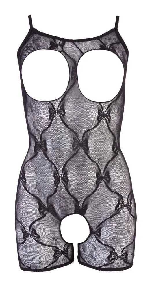 Ten seksowny kostium wyróżnia się innowacyjnym, otwartym krokiem oraz strukturą, która eksponuje biust, czyniąc go idealnym elementem na specjalne okazje. Cienkie paski subtelnie zdobią ciało, a dołączone mankiety na ramiona obszernie wzbogacają cały zestaw o elegancki akcent.