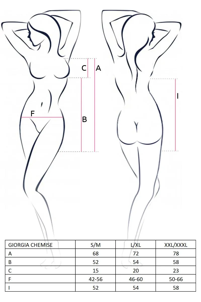 Nasza koszulka GIORGIA została zaprojektowana z myślą o maksymalnej funkcjonalności. Dzięki regulowanym ramiączkom i specjalnej gumie, którą zastosowano w konstrukcji, można idealnie dopasować ją do sylwetki. W zestawie znajdują się również stringi, które dopełniają całości i podkreślają kobiecy charakter bielizny nocnej.