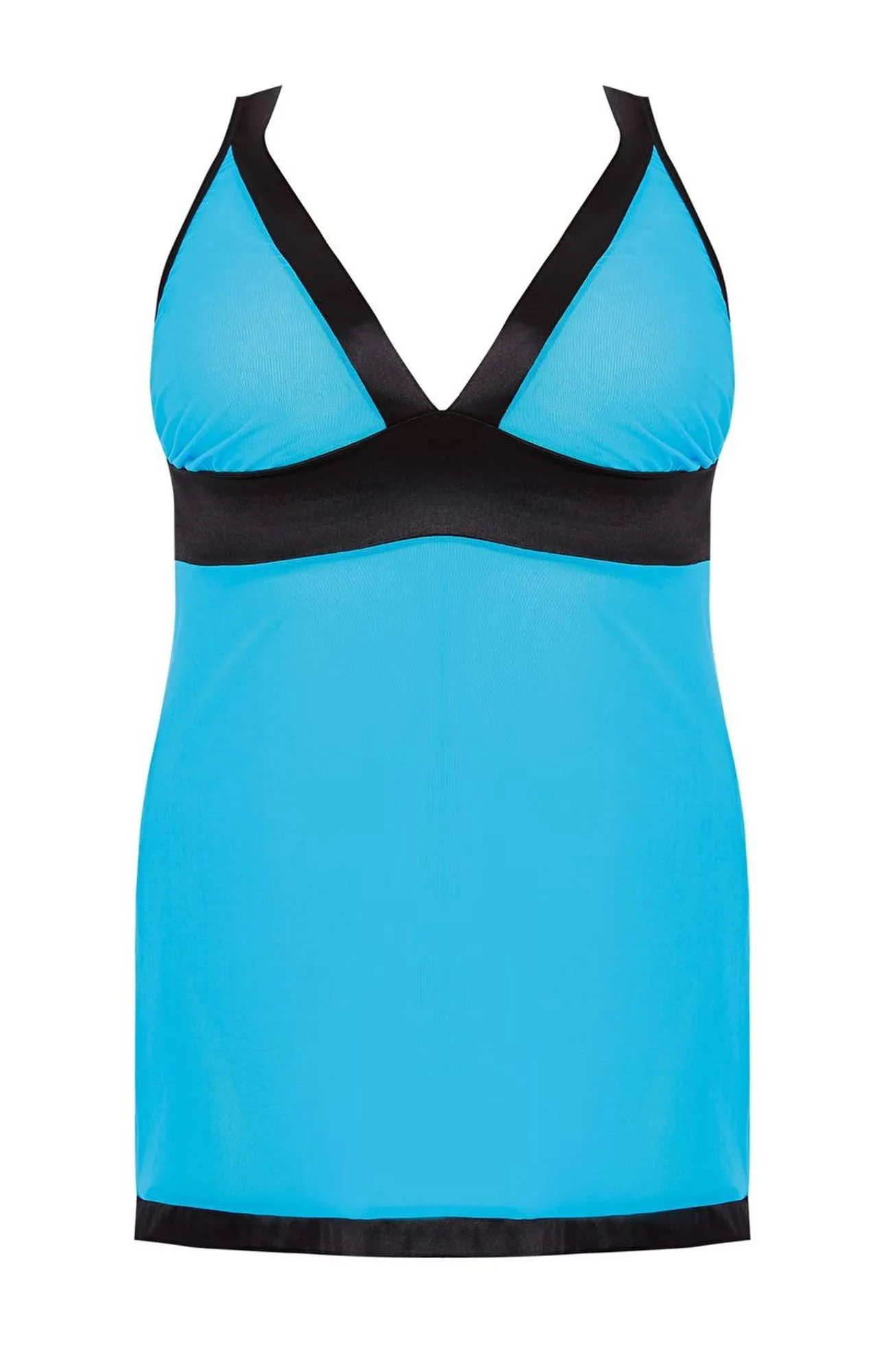 Koszulka nocna LIESSA XXL+ to idealny wybór dla kobiet poszukujących nowoczesnego designu i komfortu. Wykonana z jednolitej, transparentnej tkaniny w eleganckim turkusowym kolorze, doskonale podkreśla kobiece kształty. Kontrastowe wstawki w czarnym kolorze dodają całości niepowtarzalnego charakteru, tworząc zmysłowy look, który zachwyca.