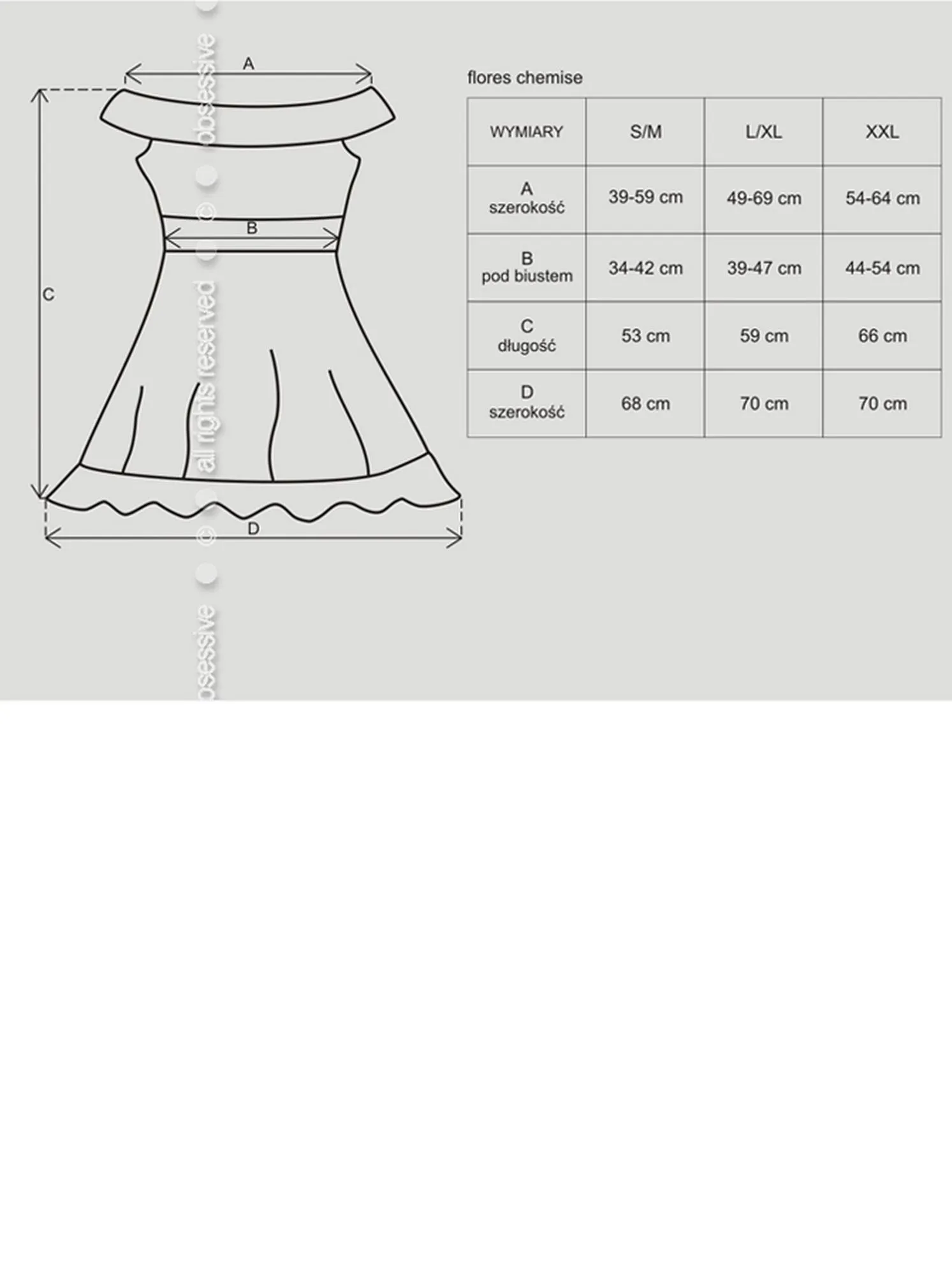 Odkryj uroczą koszulkę nocną OBSESSIVE, która doskonale łączy romantyzm i seksowność. Wykonana z delikatnego, przeźroczystego materiału, ta haleczka z pewnością umili Twoje wieczory. Jej kwiecista koronka oraz subtelne detale sprawiają, że każda chwila staje się wyjątkowa.