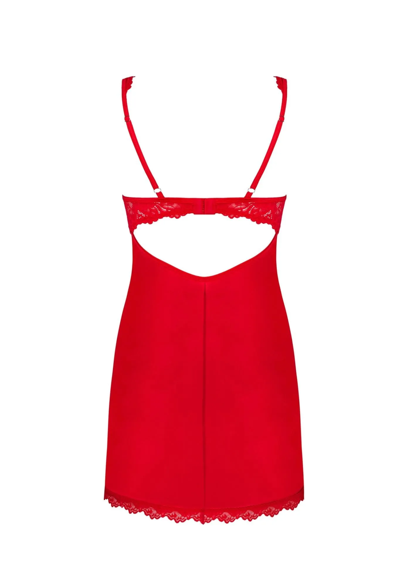Odkryj koszulkę nocną z stringami OBSESSIVE, która z pewnością przyciągnie uwagę swoją krwistoczerwoną barwą i eleganckim designem. Ta zmysłowa odzież nocna to doskonały wybór dla kobiet pragnących podkreślić swoją kobiecość i seksapil. Cudownie miękki materiał, którego skład to 95% poliester i 5% elastan, zapewnia komfort noszenia oraz idealne dopasowanie do sylwetki.
