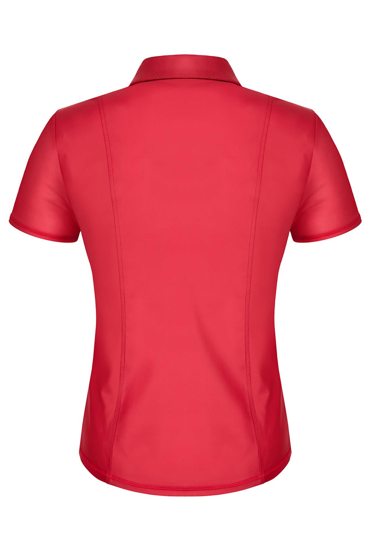 Koszulka polo REGNES FETISH PLANET – czerwony wetlook, dopasowana, S to propozycja dla osób poszukujących odzieży łączącej nowoczesny wygląd z komfortem noszenia. Wykonana z wysokiej jakości tkaniny 95% poliester / 5% elastan, zapewnia elastyczność, trwałość i doskonałe dopasowanie do sylwetki. Materiał o wykończeniu wetlook nadaje powierzchni subtelny połysk, podkreślając intensywny, czerwony kolor oraz nowoczesny charakter produktu.