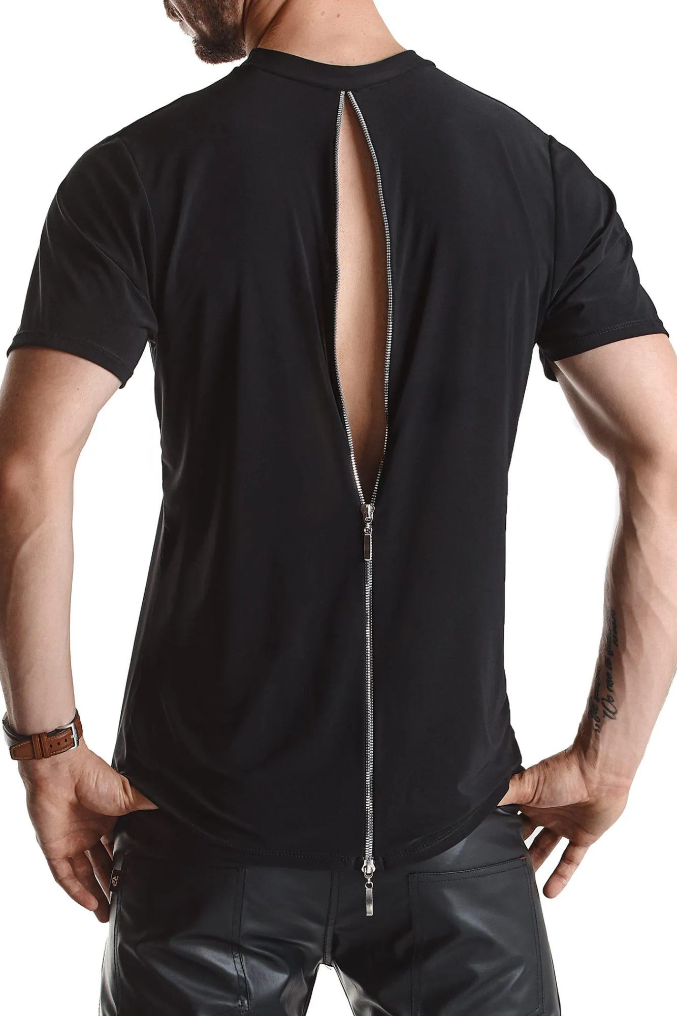 Co wyróżnia tę koszulkę, to innowacyjny design, który przykuwa uwagę. Z przodu prezentuje się jako klasyczna koszulka, jednak z tyłu skrywa niezwykły element – długi, ozdobny ekspres w kolorze srebrnym, który biegnie wzdłuż pleców. Dzięki temu rozwiązaniu, można w łatwy sposób regulować jej wygląd, a suwaki z logo RFP dodają całości wyjątkowego charakteru. Możliwość odpinania ekspresu zarówno z dołu, jak i z góry, otwiera przed użytkownikami nowe możliwości aranżacji stylizacji.