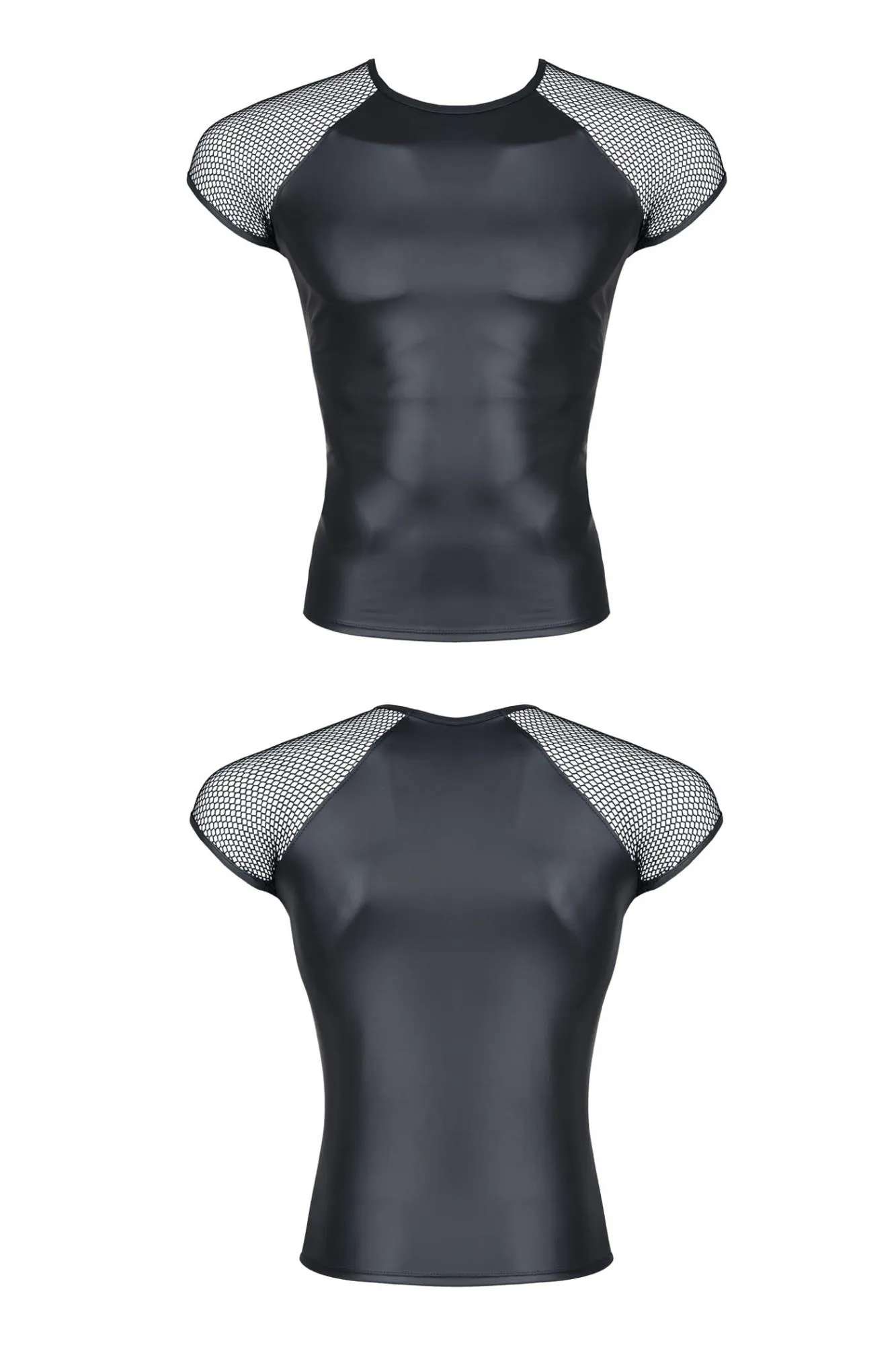 Odkryj nowy wymiar mody z Koszulką wetlook Regnes Fetish Planet CRD007. Wykonana z elastycznego materiału, który doskonale dopasowuje się do sylwetki, ta koszulka podkreśla atuty Twojej figury, jednocześnie oferując niezrównany komfort noszenia. Jej czarny wetlook w połączeniu z siateczkowymi rękawkami tworzy efektowną i zmysłową stylizację, idealną na wyjątkowe okazje.