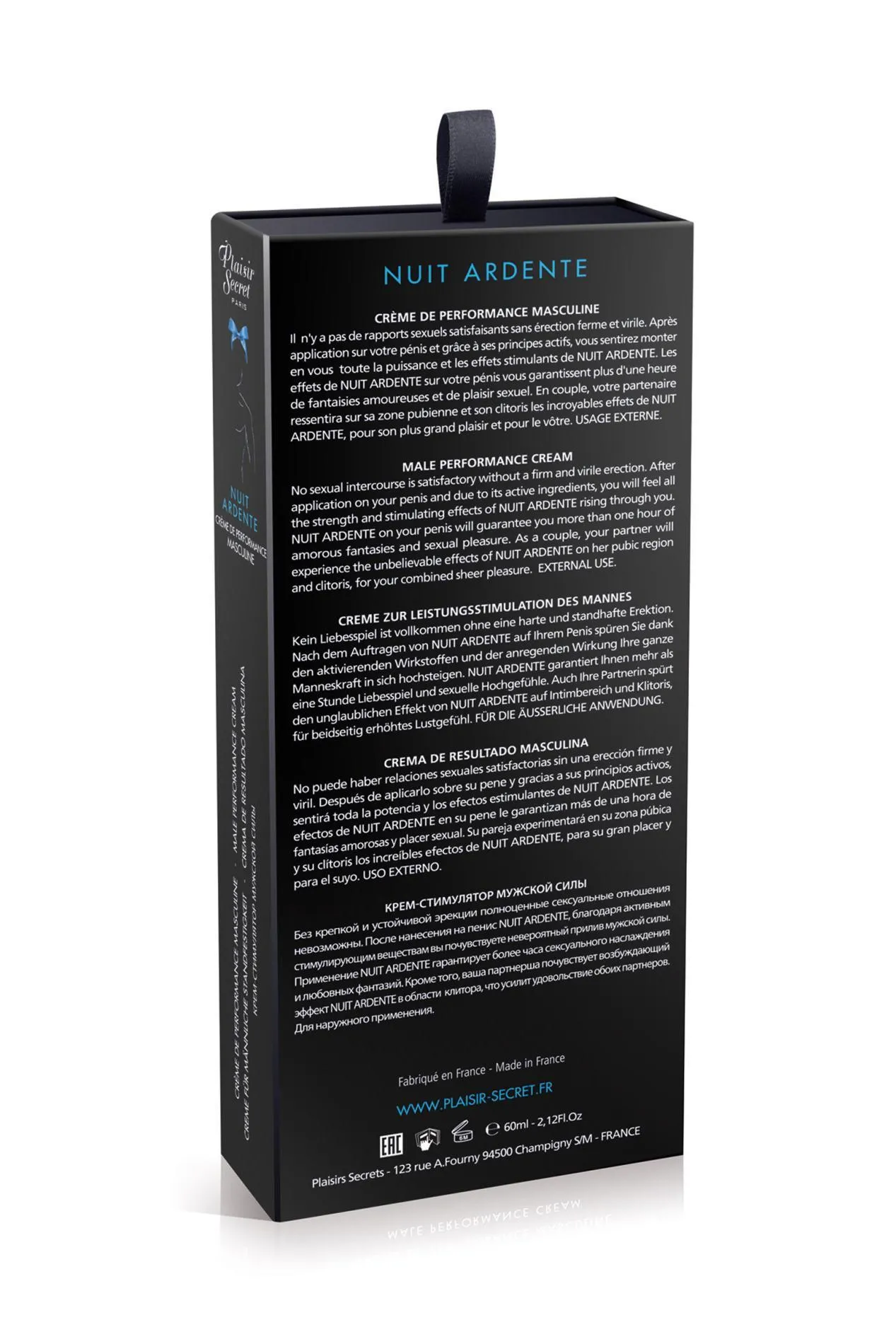 Krem jest odpowiedni dla mężczyzn pragnących wzbogacić swoje życie intymne oraz pozbyć się obaw związanych z problemami w sypialni. Należy jednak pamiętać, że nie zaleca się stosowania przez kobiety w ciąży oraz osoby z wirusem opryszczki. W komplecie z produktem otrzymasz szczegółową instrukcję użytkowania oraz pełen katalog produktów PLAISIRS SECRETS. Odkryj nowy wymiar przyjemności z Nuit Ardente i inwestuj w niezapomniane chwile!