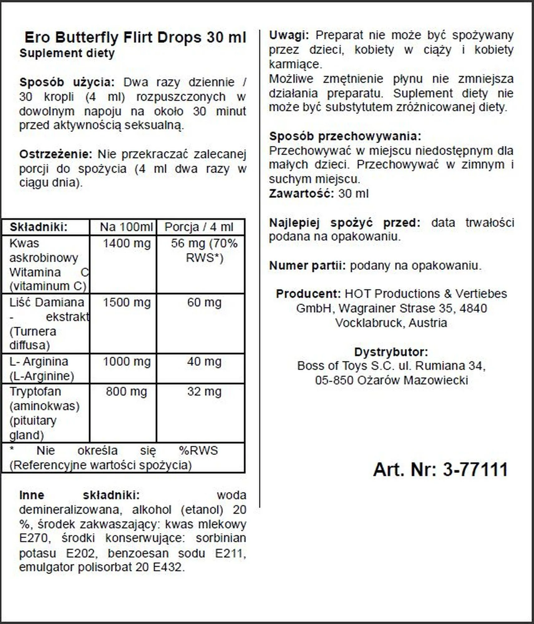 Nie pozwól, aby rutyna wpłynęła na Twoje życie miłosne. Krople Ero Butterfly Flirt to klucz do odkrycia na nowo pasji i radości z bliskości. Idealne dla par pragnących wzbogacić swoje doświadczenia i przywrócić iskierkę do relacji. Przekonaj się sam, jak niewiele potrzeba, aby miłość znów zapłonęła w Twoim sercu.