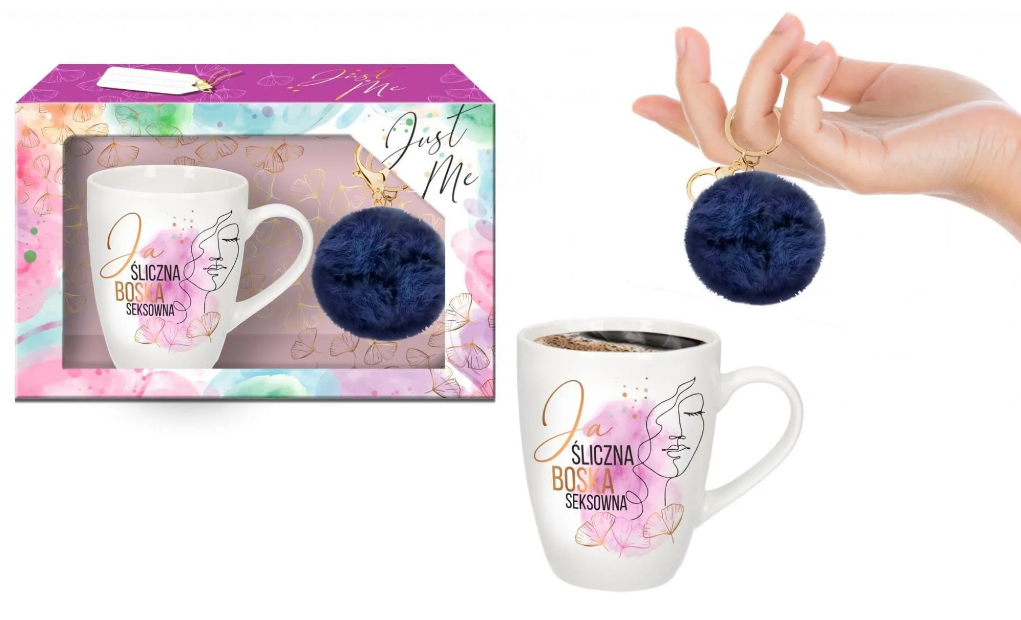 Elegancki kubek baryłka 300 mlJUST ME to doskonały wybór dla każdej kobiety, która pragnie wyrazić swoją osobowość. Jego unikalny napis „Ja Śliczna, Boska, Seksowna” sprawia, że jest to produkt idealny zarówno do użytku codziennego, jak i na wyjątkowe okazje. W połączeniu z granatowym pomponem, kubek wprowadza odrobinę zabawy i kolorów do każdej chwili przyjemności, czy to podczas porannej kawy, czy wieczornego relaksu z herbatą.