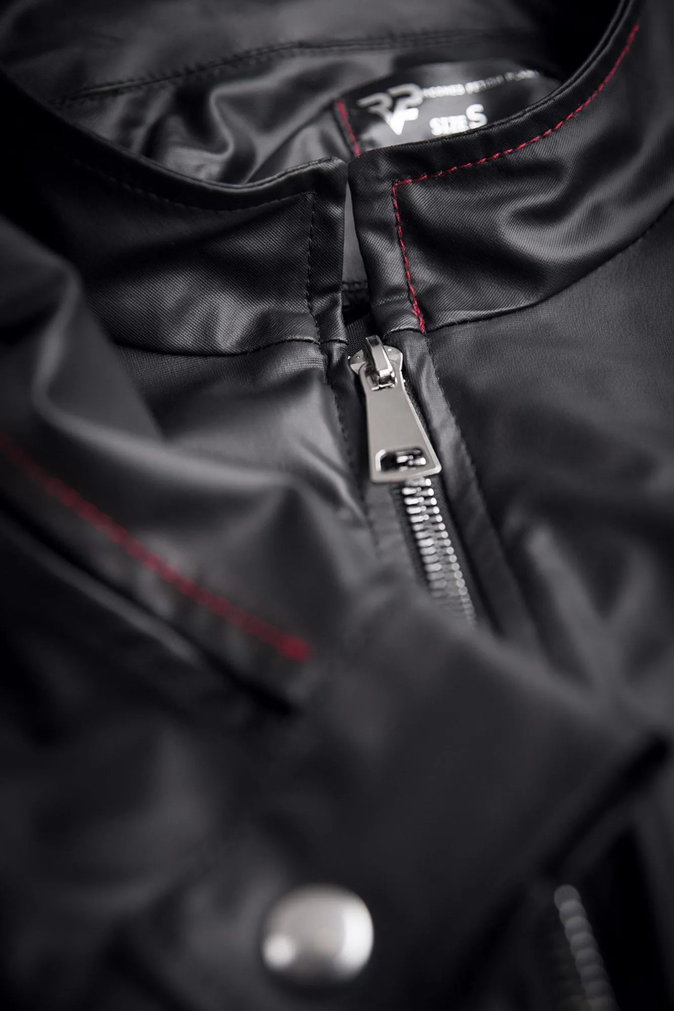 Charakterystyczne detale dodają jej wyjątkowego charakteru. Kołnierzyk w formie krótkiego stójka oraz ozdobne metalowe napy umieszczone w dolnej części przodu i przy rękawach dopełniają całości. Kurtka zapinana jest na srebrny zamek błyskawiczny z elegancką zawieszką z logo RFP. Dodatkowo, czerwone przeszycia oraz czerwona metka z Alcantary z logo RFP podkreślają dbałość o szczegóły, co czyni ten produkt jeszcze bardziej atrakcyjnym.