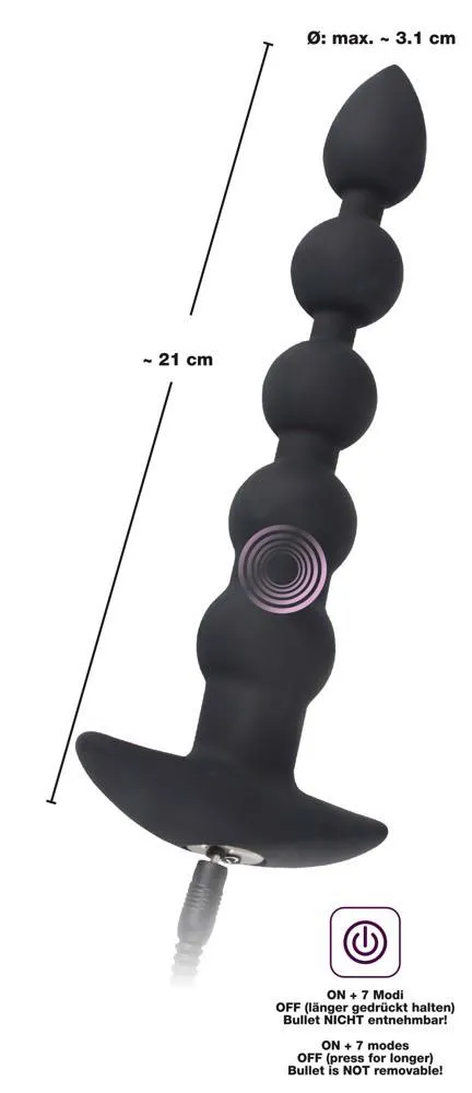 Łańcuch kulkowy analny Black Velvets jest odporny na zachlapanie i ładowany przy użyciu dołączonej wtyczki USB, co czyni go wygodnym w użytkowaniu. Doskonała jakość materiałów sprawia, że jest on przyjemny w dotyku i łatwy w pielęgnacji. Odkryj nowe obszary przyjemności i zasmakuj w niezapomnianych chwilach z tym wyjątkowym produktem, który dostarczy Ci niezapomnianych wrażeń.