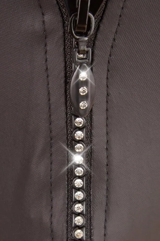 Charakterystycznym elementem tych majtek jest błyszczący zamek błyskawiczny, który przyciąga wzrok i dodaje całości niepowtarzalnego charakteru. Zamek ten jest ozdobiony kryształkami dżetów, co sprawia, że każda para wyróżnia się na tle innych modeli. Funkcjonalność spotyka się tutaj z estetyką, co pozwala na łatwe zakładanie i zdejmowanie, a jednocześnie zapewnia, że wygląda się elegancko.