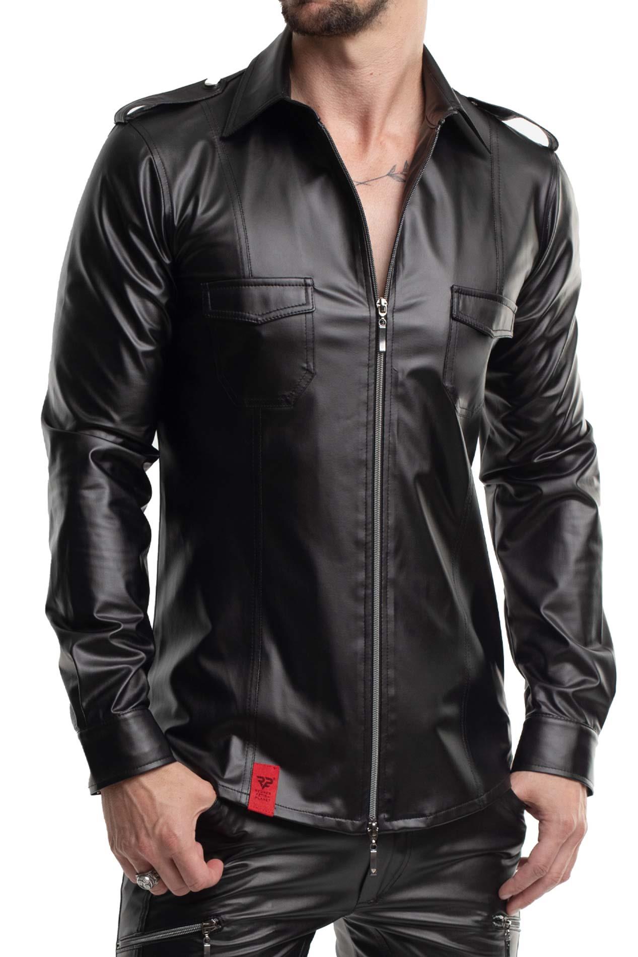 Koszula militarną REGNES FETISH PLANET - Slim-Fit, wetlook, czarna, rozmiar S