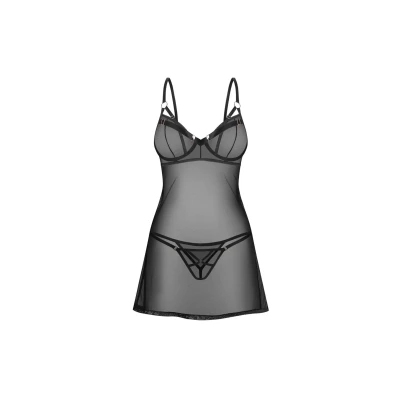 Zmysłowy komplet babydoll z stringami XL/2XL w klasycznej czerni z regulowanymi ramiączkami