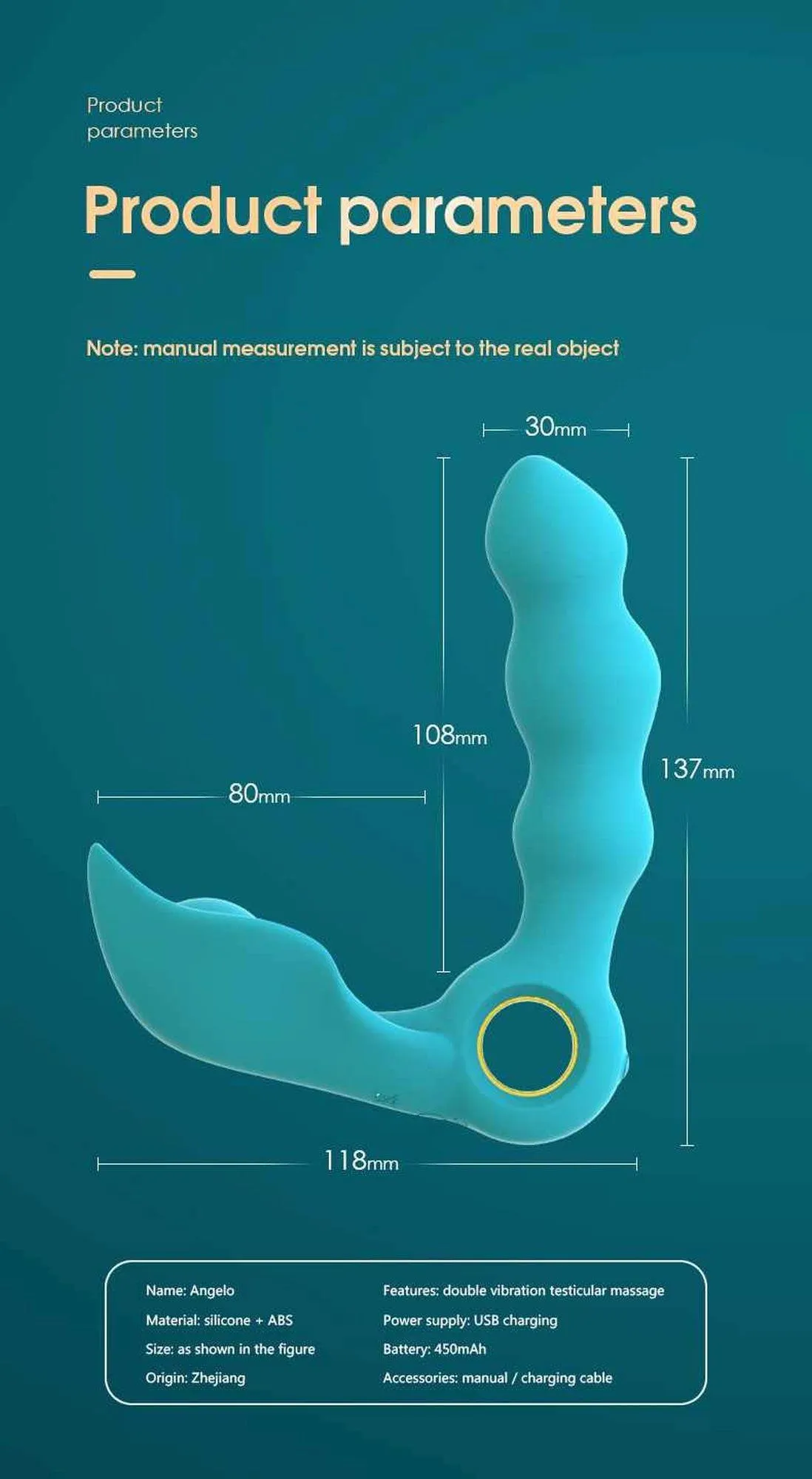 Masażer prostaty Angelo to innowacyjna zabawka stworzona z myślą o pełnej przyjemności i zaspokojeniu Twoich potrzeb intymnych. Jego ergonomiczny kształt oraz wysokiej jakości silikon, z którego został wykonany, gwarantują aksamitne odczucie i bezpieczeństwo użytkowania. Dzięki zastosowanej technologii, ten masażer jednocześnie stymuluje punkt P oraz jądra, dostarczając niezapomnianych doznań.