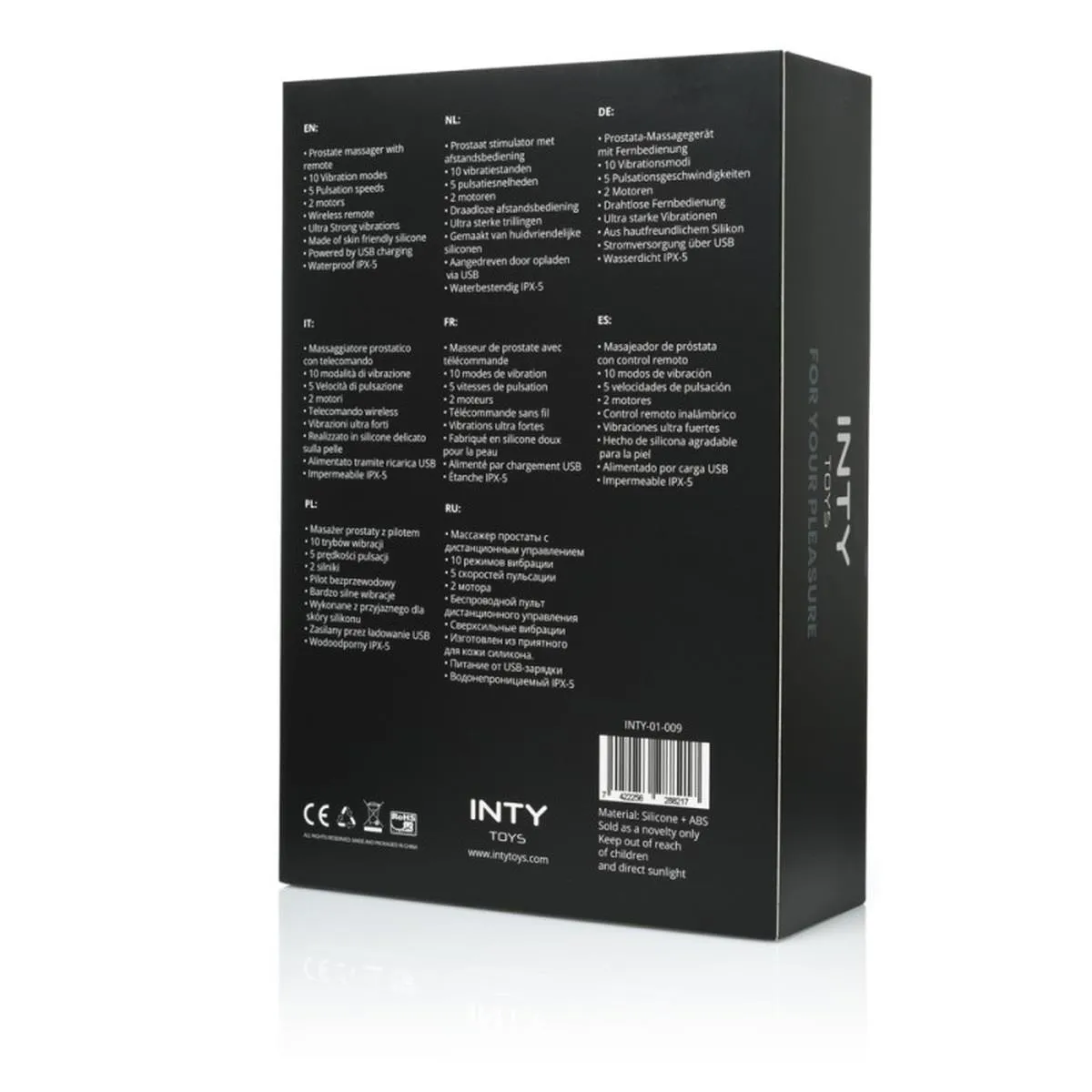 Masażer prostaty INTY Toys to innowacyjne urządzenie, które dostarcza wyjątkowych doznań dzięki 10 różnym trybom wibracji. Niezależnie od tego, czy jesteś doświadczonym użytkownikiem, czy dopiero zaczynasz swoją przygodę z masażerami, ten produkt z pewnością spełni Twoje oczekiwania. Wibracje są ultra silne, co zapewnia intensywne doznania i możliwość dostosowania ich do własnych preferencji.