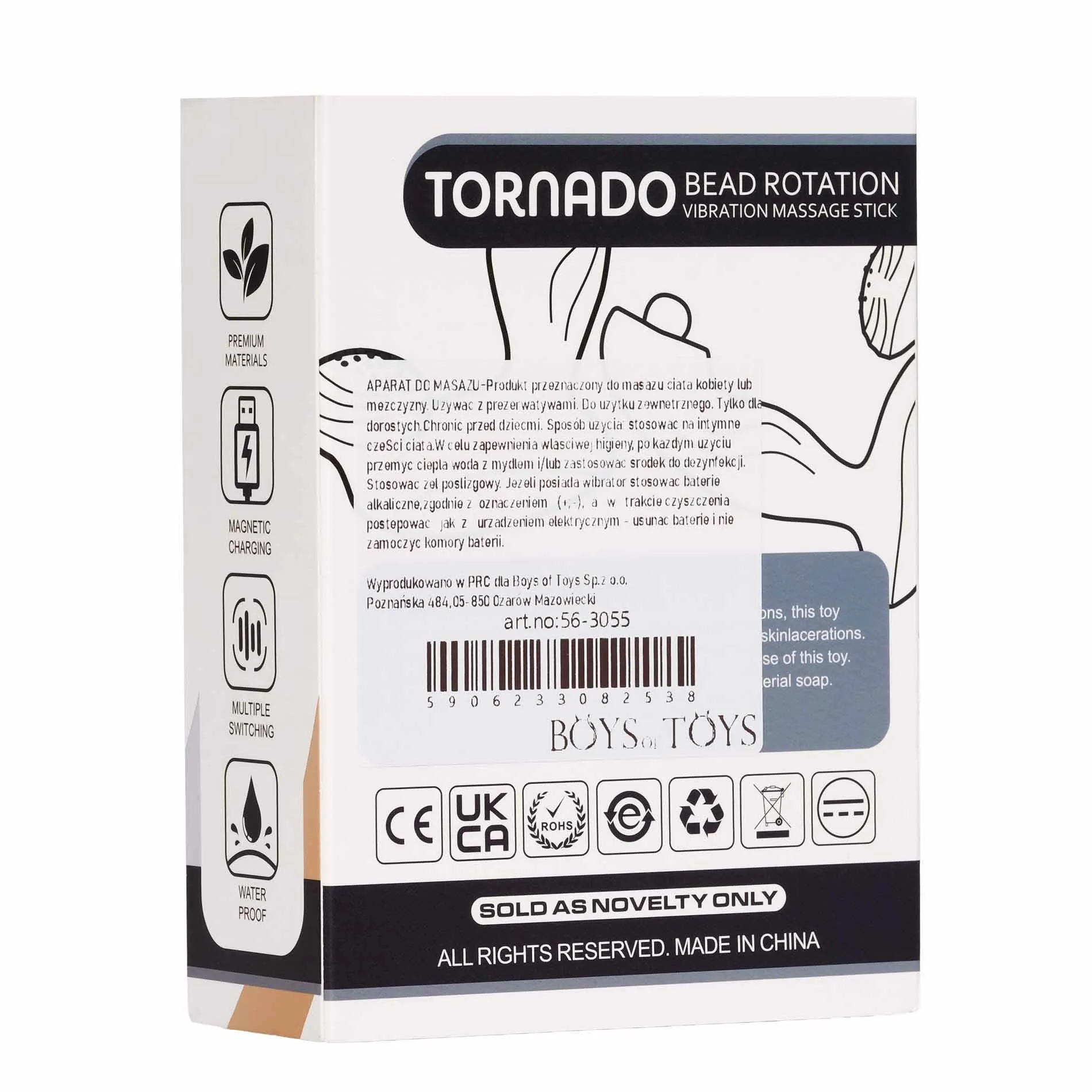 Masażer prostaty Tornado charakteryzuje się także wodoodpornością na poziomie IPX-5, co otwiera przed użytkownikami nowe możliwości, takie jak korzystanie z produktu w wodzie. Ładowanie urządzenia jest szybkie i komfortowe dzięki ładowaniu magnetycznemu, które pozwala na pełne naładowanie w zaledwie 150 minut. Po pełnym naładowaniu, masażer może działać przez około 60 minut, co zapewnia długotrwałe i intensywne doznania.