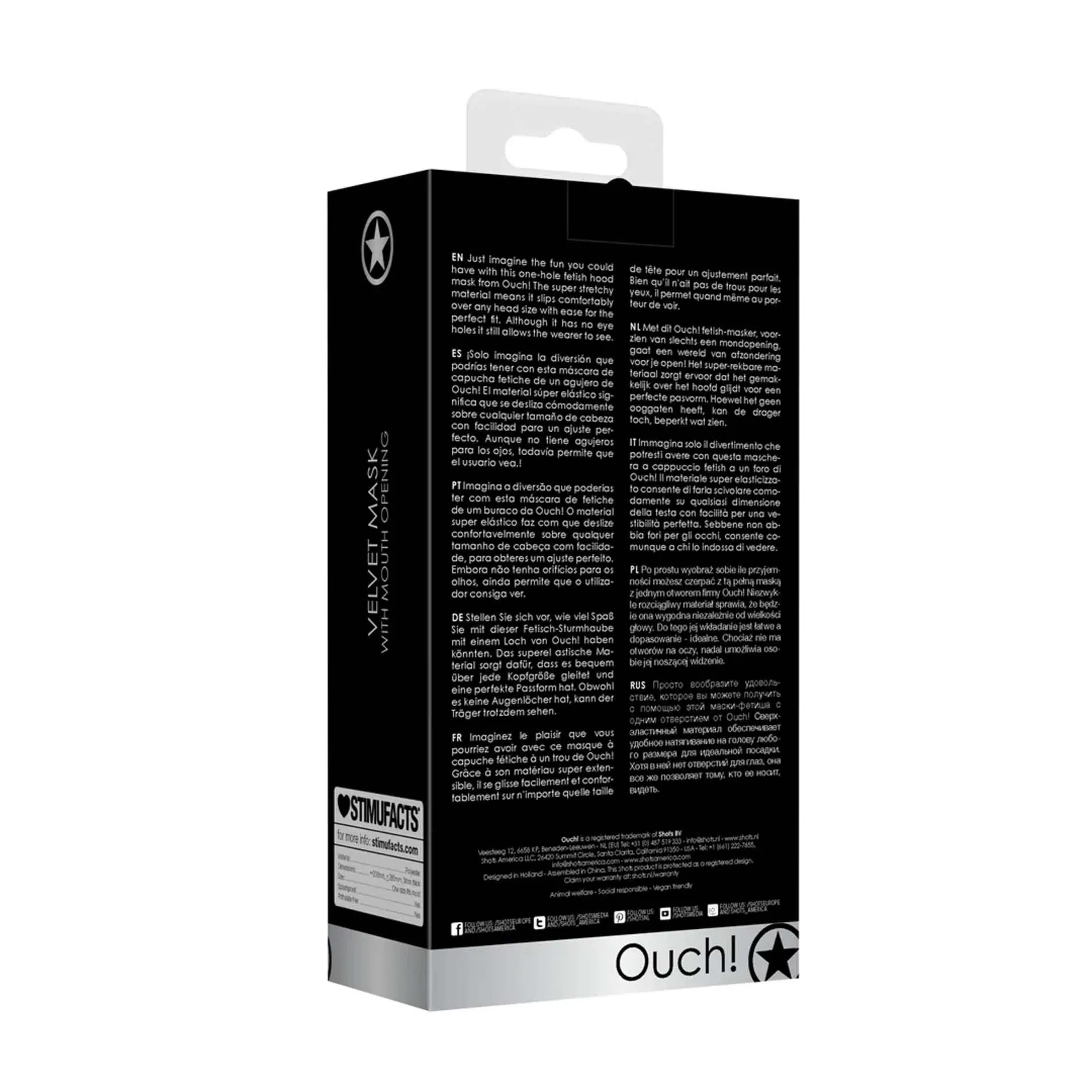 Odkryj wyjątkową maskę fetyszową OUCH!, zaprojektowaną z myślą o pełni doznań w bezpieczny sposób. Wykonana z superelastycznego poliestru, ta maska z jednym otworem jest idealnym rozwiązaniem dla osób poszukujących nowych wyzwań i możliwości. Jej długość wynosząca 20 cm sprawia, że dopasowuje się do większości rozmiarów głowy, zapewniając komfort i swobodę noszenia.