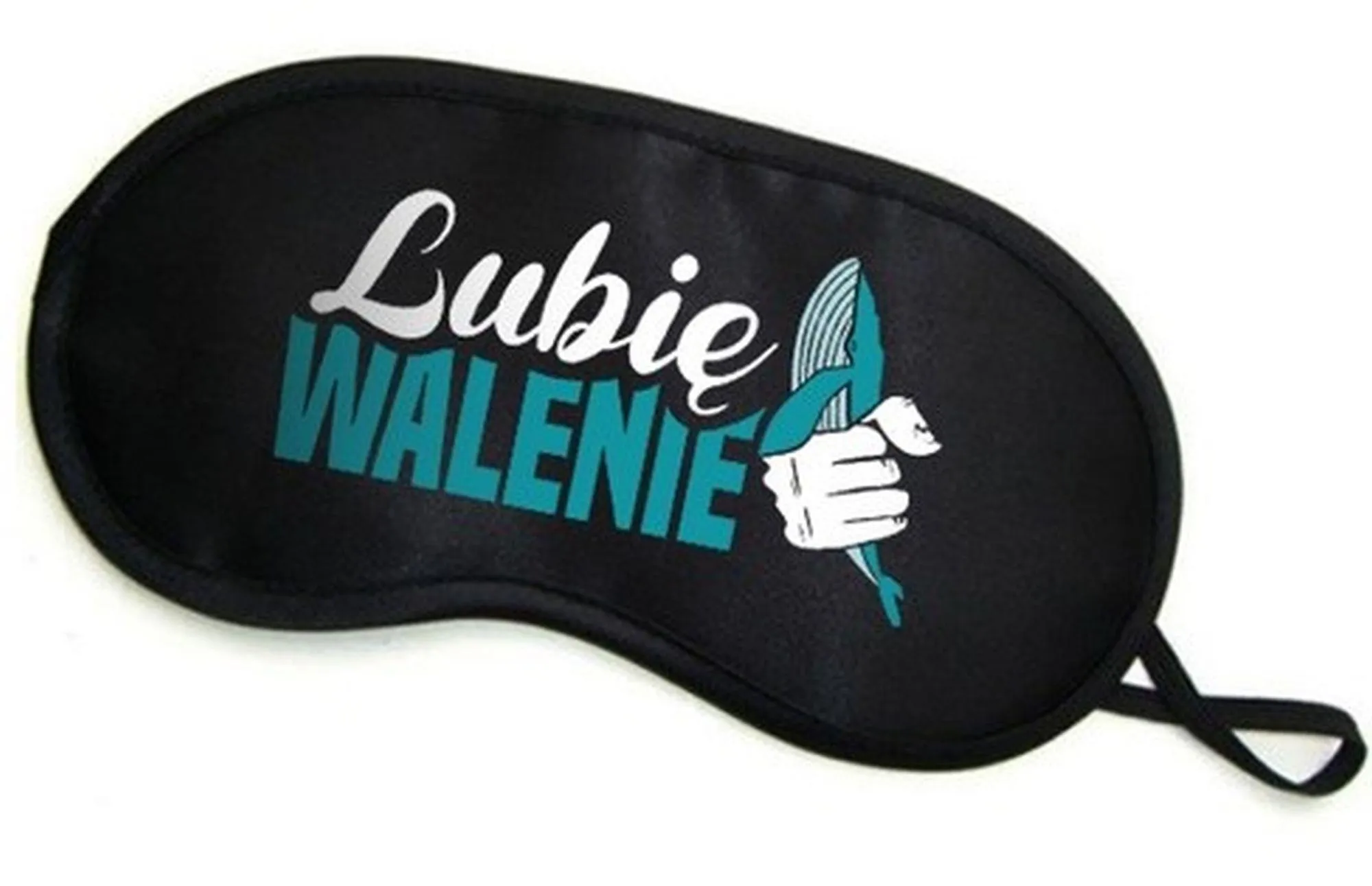 Opaska na oczy "LUBIĘ WALENIE" - Delikatna, miła w dotyku, zabawny napis