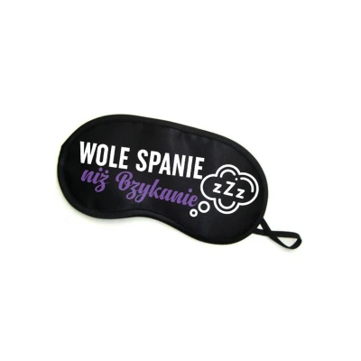 Opaska na oczy WOLĘ SPANIE NIŻ BZYKANIE - Miękka, delikatna, z zabawnym napisem
