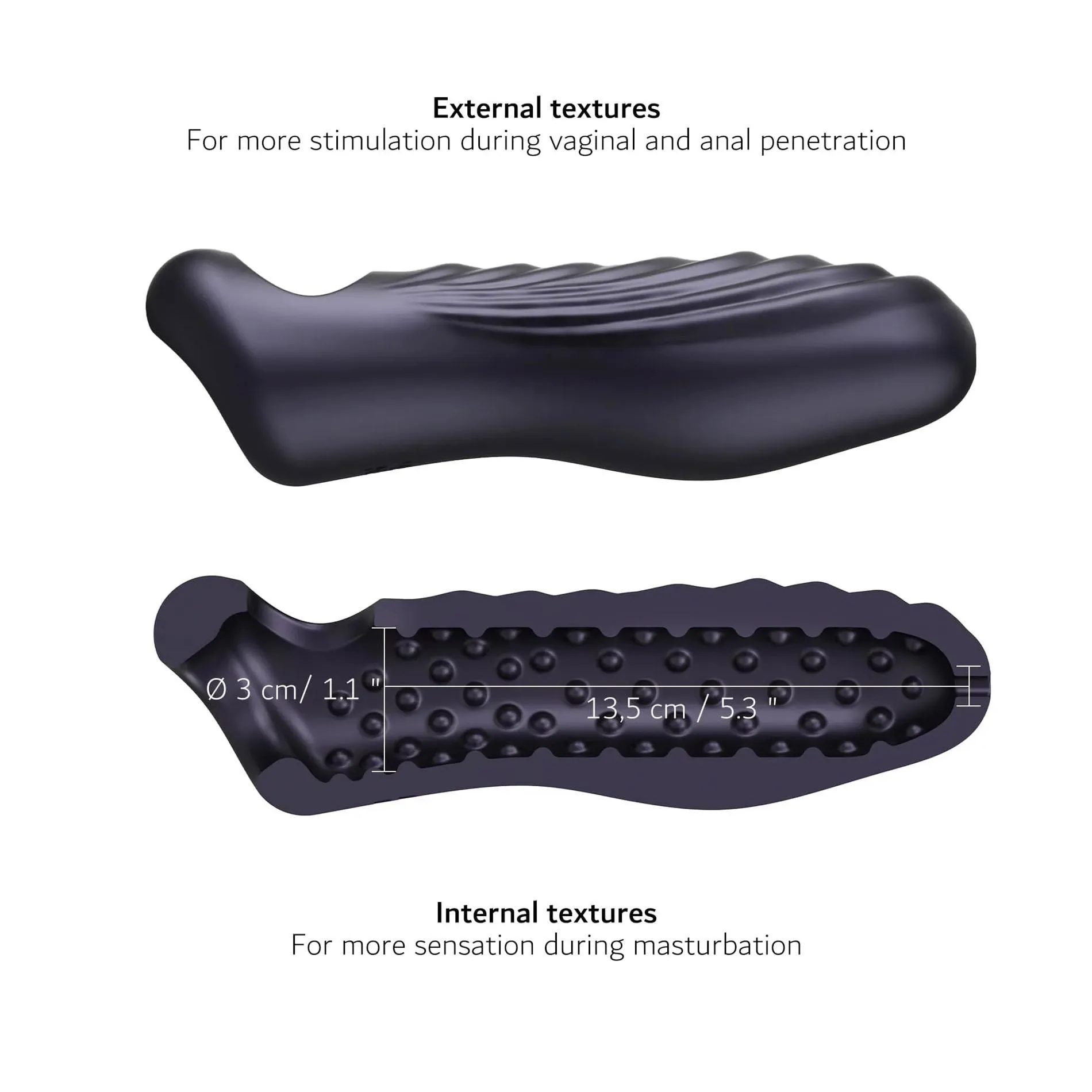 Masturbator 2-w-1 RYZER Max Black Plum to zaawansowane urządzenie wykonane z ultra-miękkiego, rozciągliwego płynnego silikonu, zaprojektowane z myślą o intensywnych i zróżnicowanych doznaniach. Produkt oferuje konstrukcję 2-w-1, umożliwiającą użycie jako samodzielny ręczny masturbator lub jako nakładka podczas zabaw partnerskich. Dzięki większym wymiarom w rozmiarze XL zapewnia pełniejsze dopasowanie i mocniejsze odczucia, przy jednoczesnym komforcie użytkowania.