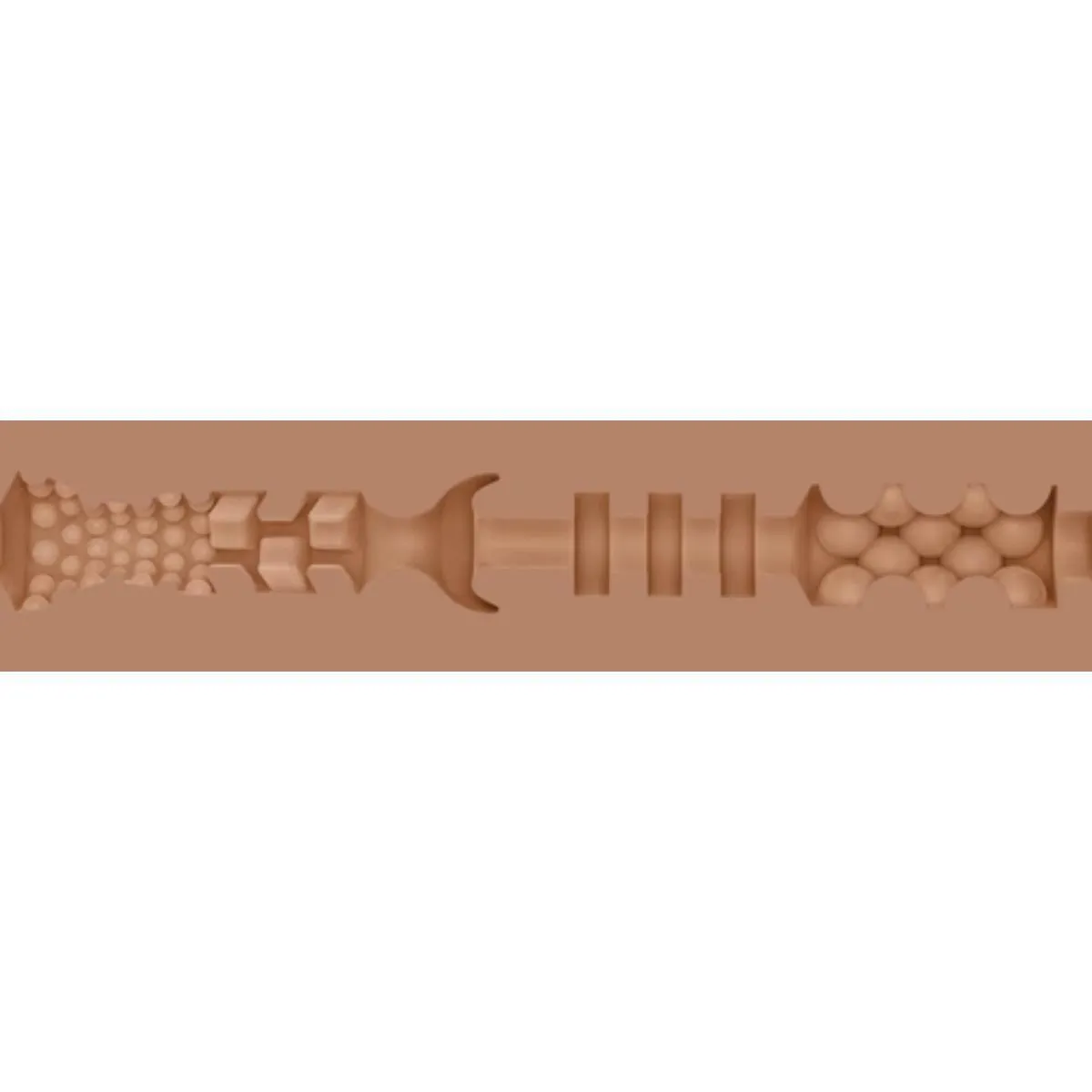 Wnętrze modelu posiada strukturę Eden z wyraźnym żebrowaniem, zaprojektowaną w celu zapewnienia zróżnicowanych i intensywnych doznań. Dzięki precyzyjnie rozmieszczonym elementom tekstury, użytkownik otrzymuje realistyczne odczucia oraz możliwość regulacji intensywności poprzez zmianę kąta i nacisku podczas użytkowania. Wkład jest elastyczny i łatwy do czyszczenia — przed użyciem zaleca się jego ogrzanie w ciepłej wodzie dla uzyskania jeszcze większego realizmu.