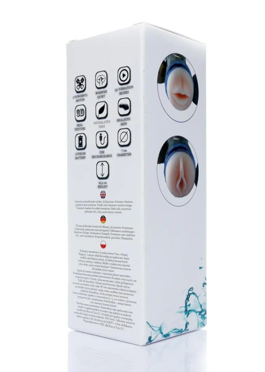Ten innowacyjny produkt wyróżnia się dwoma potężnymi silnikami, które oferują 35 funkcji intensywnych wibracji, pulsacji oraz eskalacji. Dzięki temu możesz dostosować moc masażu do własnych preferencji. Miękka tekstura wewnętrznej komory została zaprojektowana tak, aby każda chwila była maksymalnie przyjemna, a stymulacja była intensywna i satysfakcjonująca.