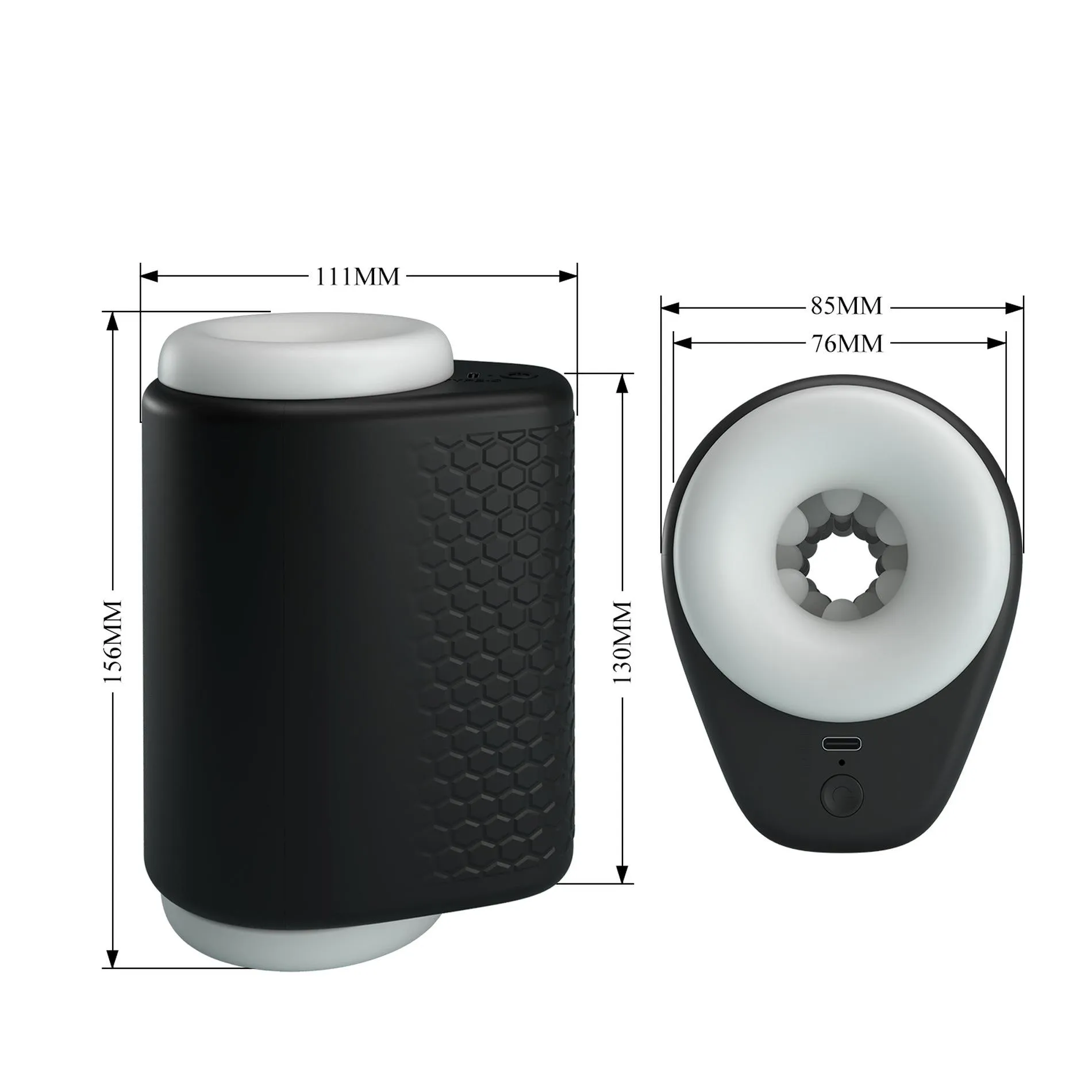 Masturbator oferuje aż 5 różnych funkcji wibracji oraz 5 ustawień ruchów posuwistych, co pozwala na idealne dopasowanie stymulacji do indywidualnych potrzeb i nastroju. Dzięki możliwości regulacji intensywności możesz eksperymentować i odkrywać nowe formy przyjemności. Teksturowane wnętrze z żebrowanymi i wypukłymi oraz wyraźnymi wypustkami stwarza niepowtarzalne doznania, które umożliwiają osiągnięcie intensywnego orgazmu.