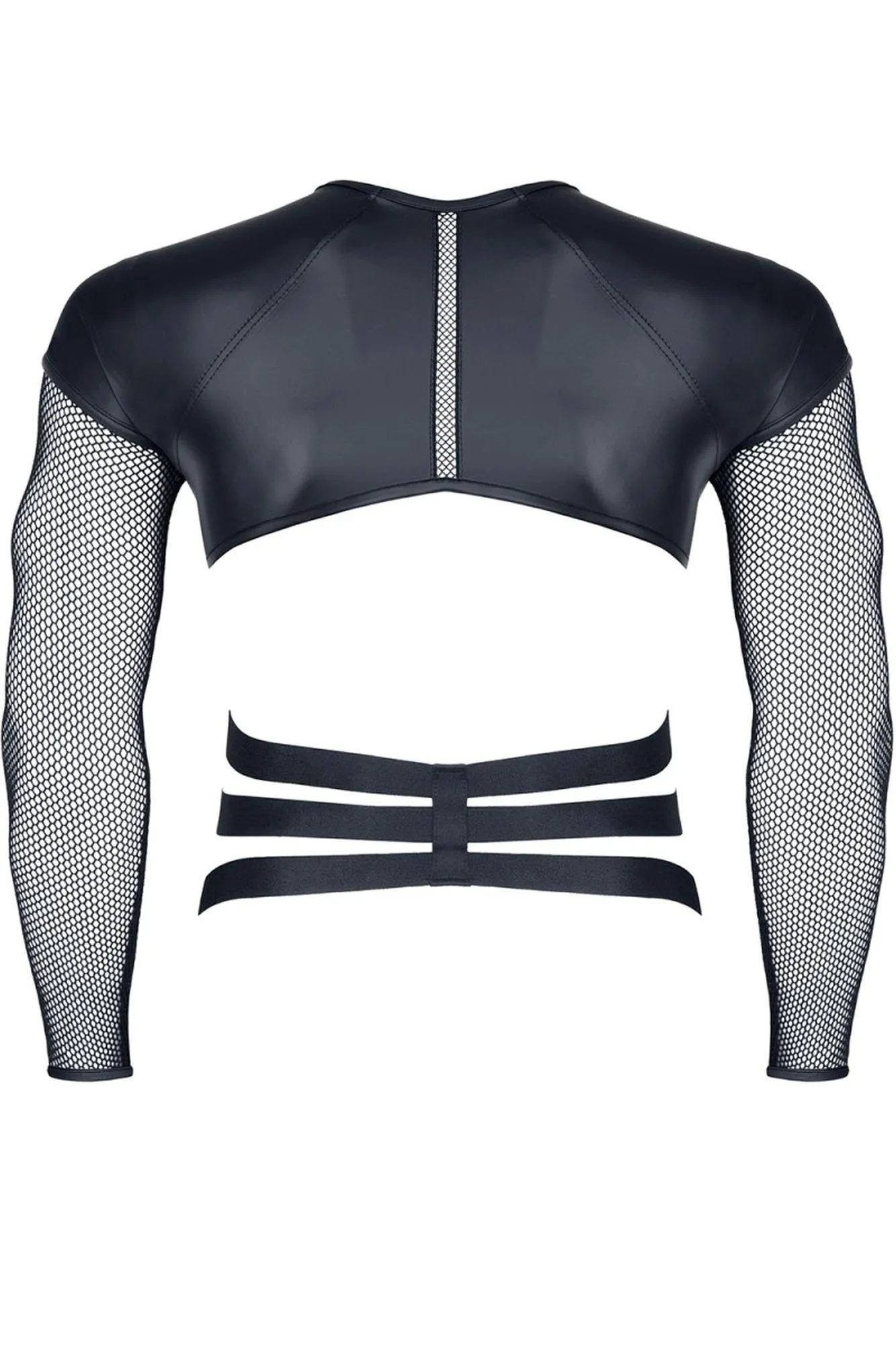 T-shirt wyróżnia się ozdobnymi elementami w postaci czarnych gumek i srebrnych pierścieni, które nadają mu wyjątkowego charakteru. Pionowe ozdobne gumki w kratkę na przodzie i tyle t-shirta przyciągają wzrok i dodają elegancji. Dodatkowo, lekko połyskująca struktura gumy sprawia, że t-shirt z łatwością wpisuje się w aktualne trendy mody.