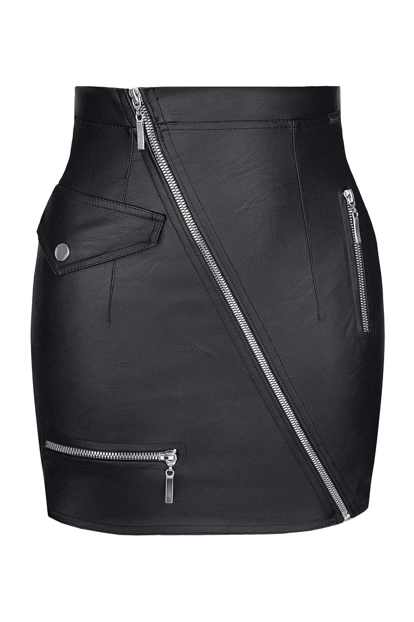 Design spódniczki przyciąga wzrok dzięki trzem ozdobnym zamkom błyskawicznym umieszczonym z przodu oraz patce ze srebrnym napem. Suwaki ozdobione są grawerowanym logo demoniq, co dodaje jej unikalnego charakteru. Model FRANCESCA został zaprojektowany, aby perfekcyjnie podkreślać wcięcie w talii i uwypuklać kształty pośladków, co czyni go doskonałym wyborem na wyjątkowe okazje.