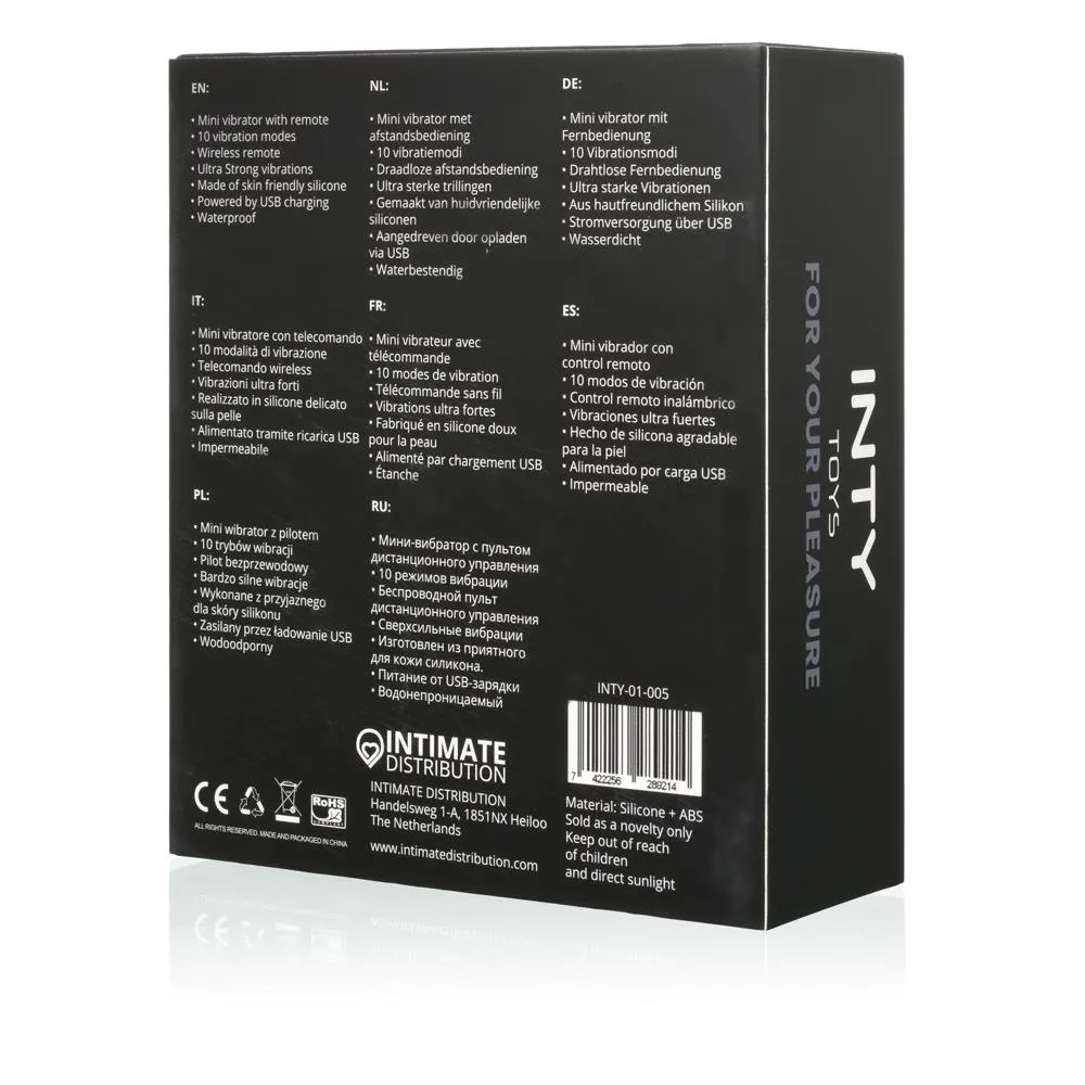 Oto Mini wibrator INTY Toys - PULSE, idealny wybór dla osób poszukujących intensywnych doznań. Dzięki swojemu wodoodpornemu designowi, wibrator ten jest doskonałym towarzyszem zarówno w sypialni, jak i podczas relaksujących kąpieli. Jego kompaktowe rozmiary sprawiają, że jest łatwy do przechowywania oraz idealny do zabrania w podróż.