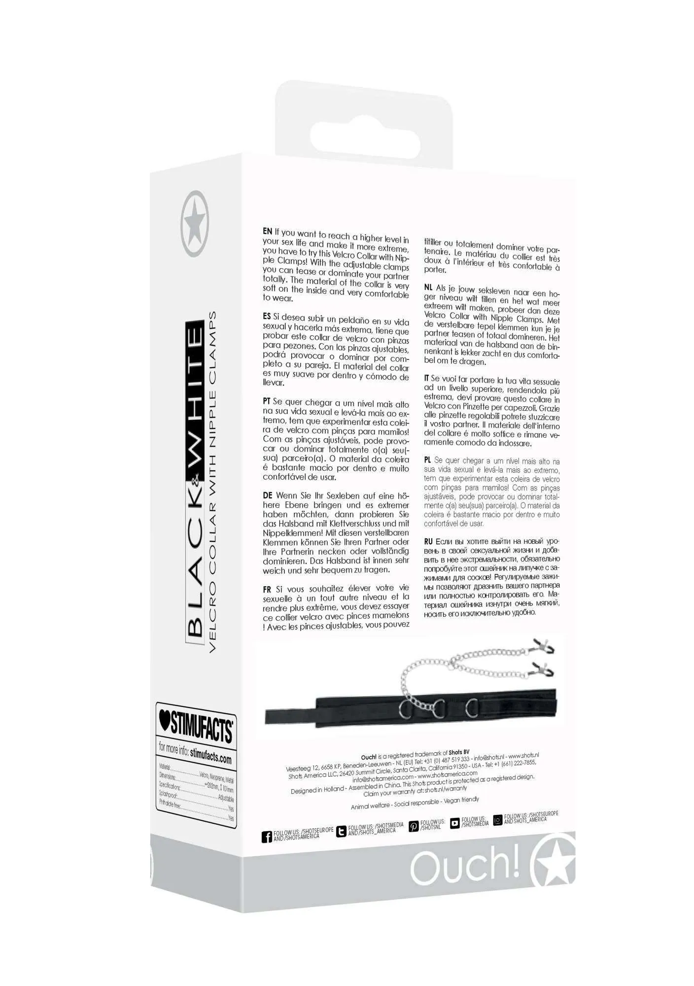 Dzięki rzepowi, obroża jest w pełni regulowana, co pozwala na idealne dopasowanie do indywidualnych potrzeb. Bez względu na rozmiar, łatwo dostosujesz ją do swojego ciała, co sprawia, że jest to produkt uniwersalny. Metalowy łańcuszek o długości 38,5 cm dodaje całości elegancji i charakteru, będąc jednocześnie praktycznym elementem, który wzmacnia doznania.