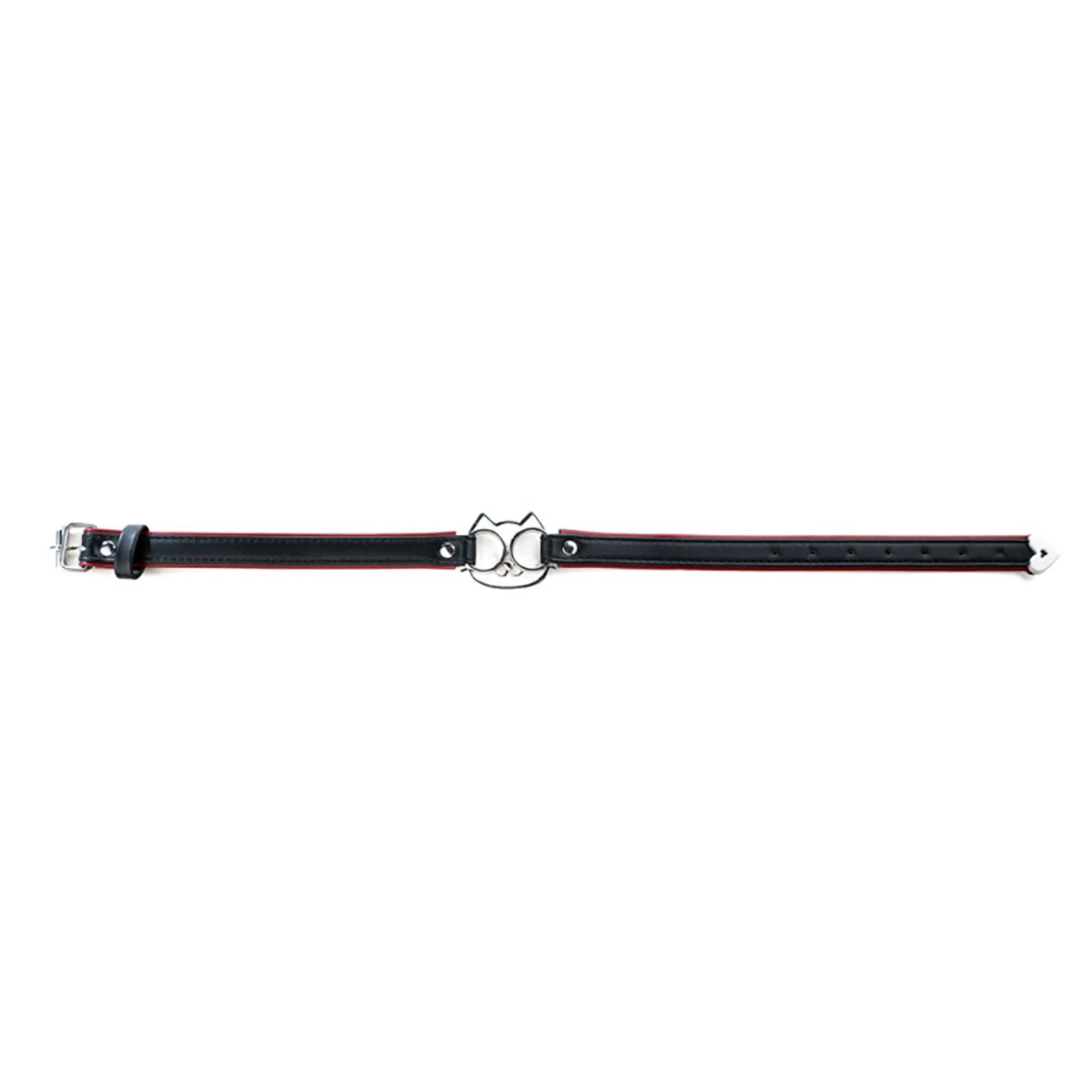 Wykonana z ekoskóry PU oraz metalu, obroża łączy w sobie trwałość z nowoczesnym designem. Jej delikatna struktura sprawia, że jest miła w dotyku, a jednocześnie łatwa w utrzymaniu czystości. Metalowy motyw kociej twarzy przyciąga wzrok i dodaje obroży niepowtarzalnego charakteru, idealnie wpisując się w estetykę fetyszy i mody alternatywnej.