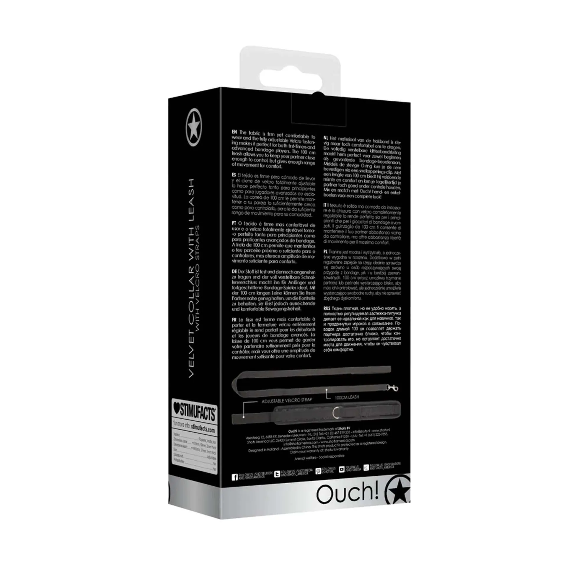 W zestawie znajduje się również smycz o długości 120 cm, która pozwala na bliskie trzymanie partnera, zapewniając jednocześnie komfort i swobodę ruchu. Dzięki temu zestawowi można w pełni cieszyć się ekscytującą zabawą bondage. Zalecamy połączenie obroży z kajdankami na ręce i kostki z serii OUCH!, aby stworzyć zharmonizowany i efektowny komplet, który dostarczy niezapomnianych wrażeń w każdej sytuacji.