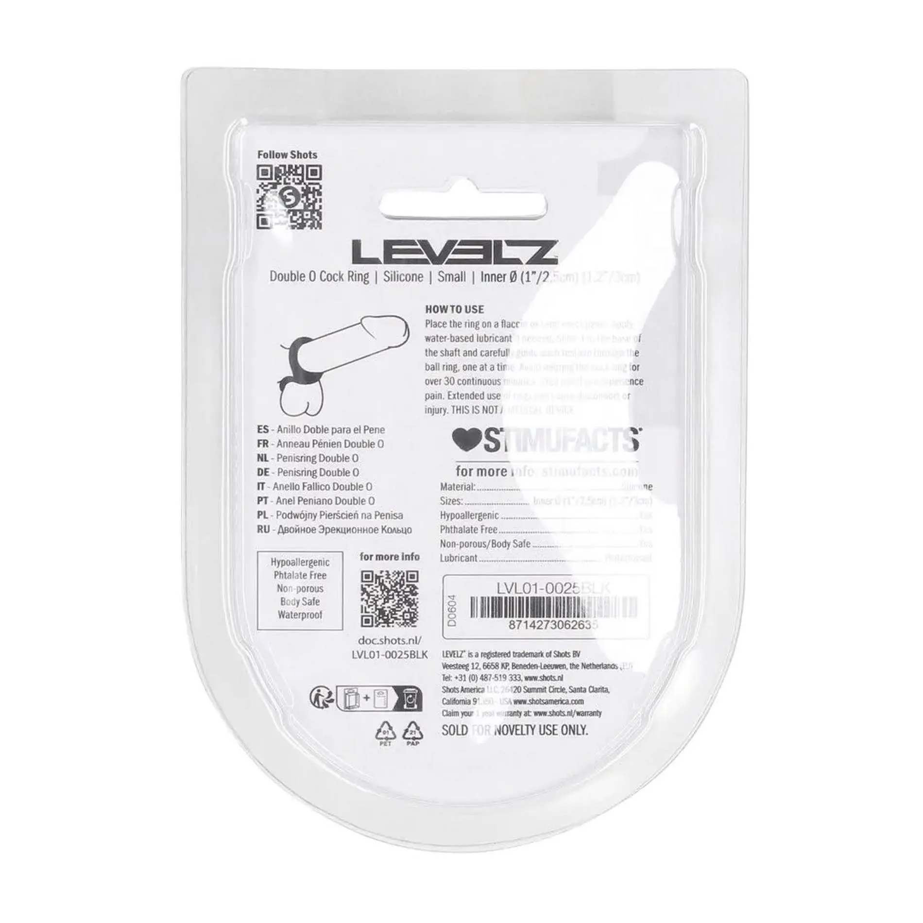 Dzięki podwójnej budowie, opaska LEVELZ obejmuje jednocześnie członek i jądra, co pozwala na wzmocnienie erekcji oraz wydłużenie czasu trwania. Dodatkowe uciskowe działanie może przyczynić się do bardziej intensywnych doznań zarówno dla użytkownika, jak i jego partnera. Produkt dostępny jest w dwóch rozmiarach, wewnętrznym o średnicy 2,5 cm oraz zewnętrznym o średnicy 3 cm, co umożliwia dopasowanie do indywidualnych potrzeb.