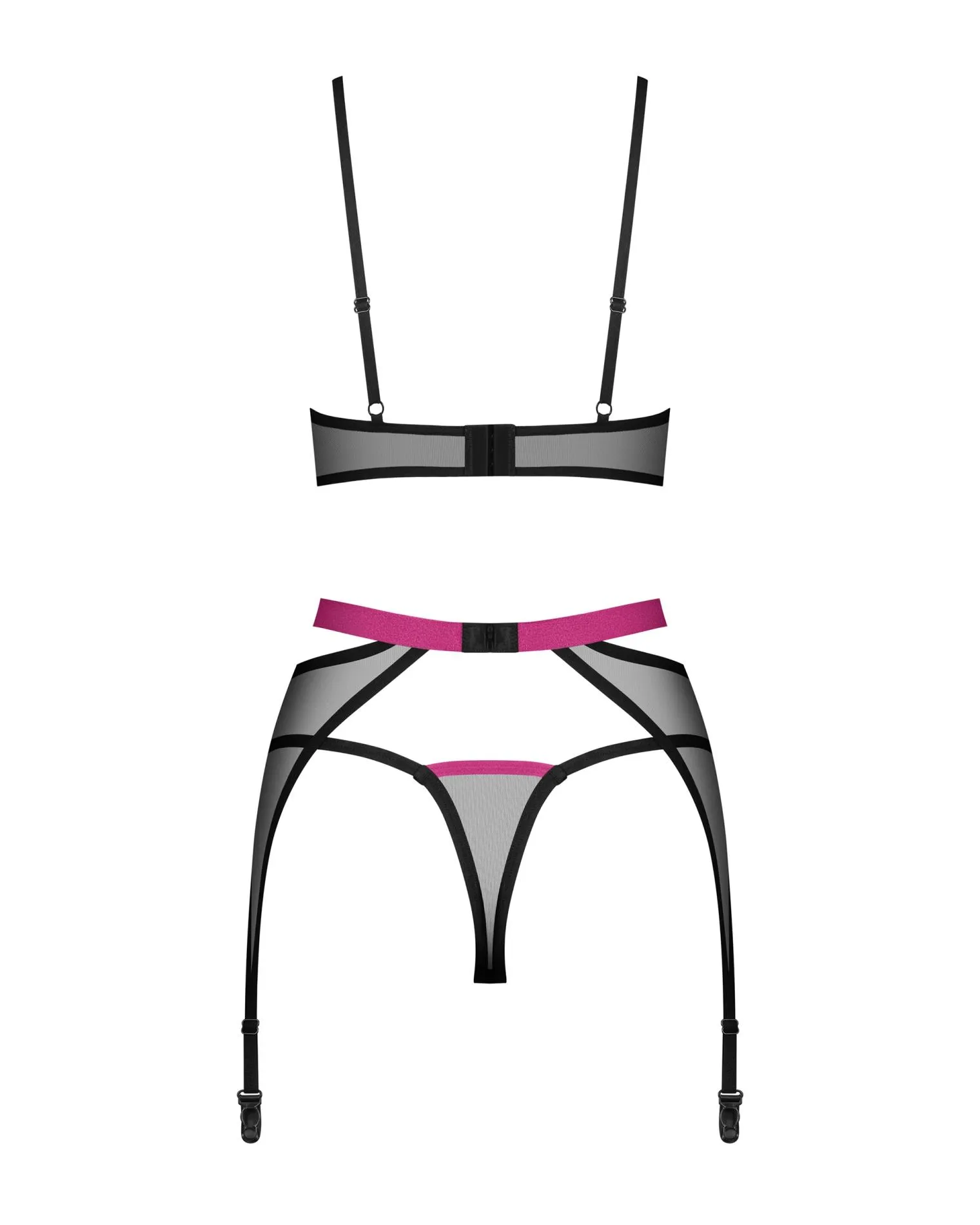 Komplet składa się z trzech elementów: pasa do pończoch, stanika oraz stringów, co czyni go kompletnym wyborem dla każdej kobiety pragnącej poczuć się uwodzicielsko. Wśród głównych cech wyróżniających ten zestaw można wymienić:
