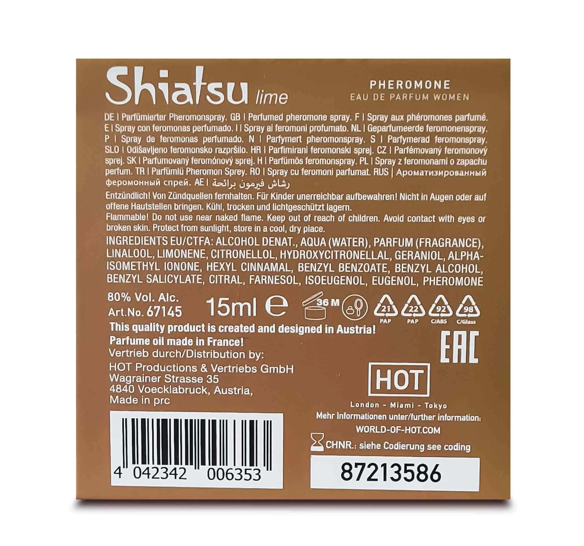 Feromony, które znalazły się w składzie tych perfum, są subtelnymi chemicznymi przekaźnikami, które działają na poziomie podświadomości. Wiele decyzji dotyczących przyciągania i atrakcyjności podejmujemy na podstawie zmysłów, a odpowiedni zapach potrafi wczuć w nas pewność siebie i wydobyć nasze naturalne piękno. Perfumy SHIATSU są doskonałym uzupełnieniem codziennych stylizacji, podkreślając indywidualny styl i osobowość.