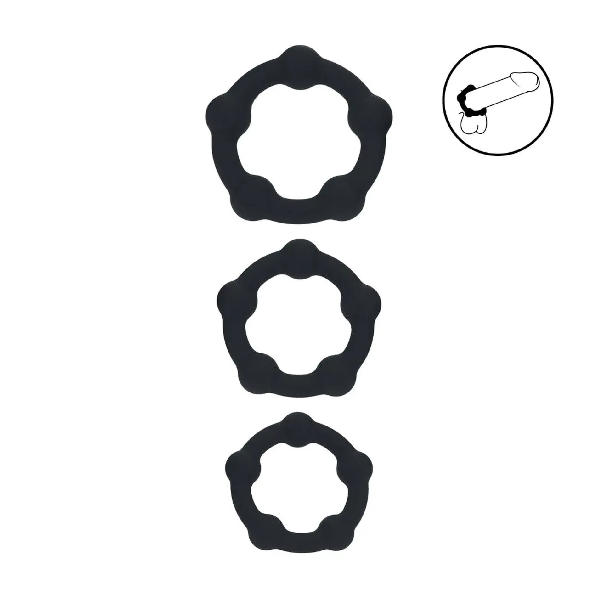 Zestaw zawiera pierścienie w trzech rozmiarach: XS, S oraz M, co pozwala na dostosowanie doznania do osobistych preferencji. Użytkownik może wybrać odpowiedni poziom napięcia i ucisku, co czyni każdy z pierścieni doskonałym do noszenia na trzonie, wokół jąder lub w układzie warstwowym. Taki wybór umożliwia kontrolowaną stymulację, wzbogacając doświadczenia podczas intymnych chwil.
