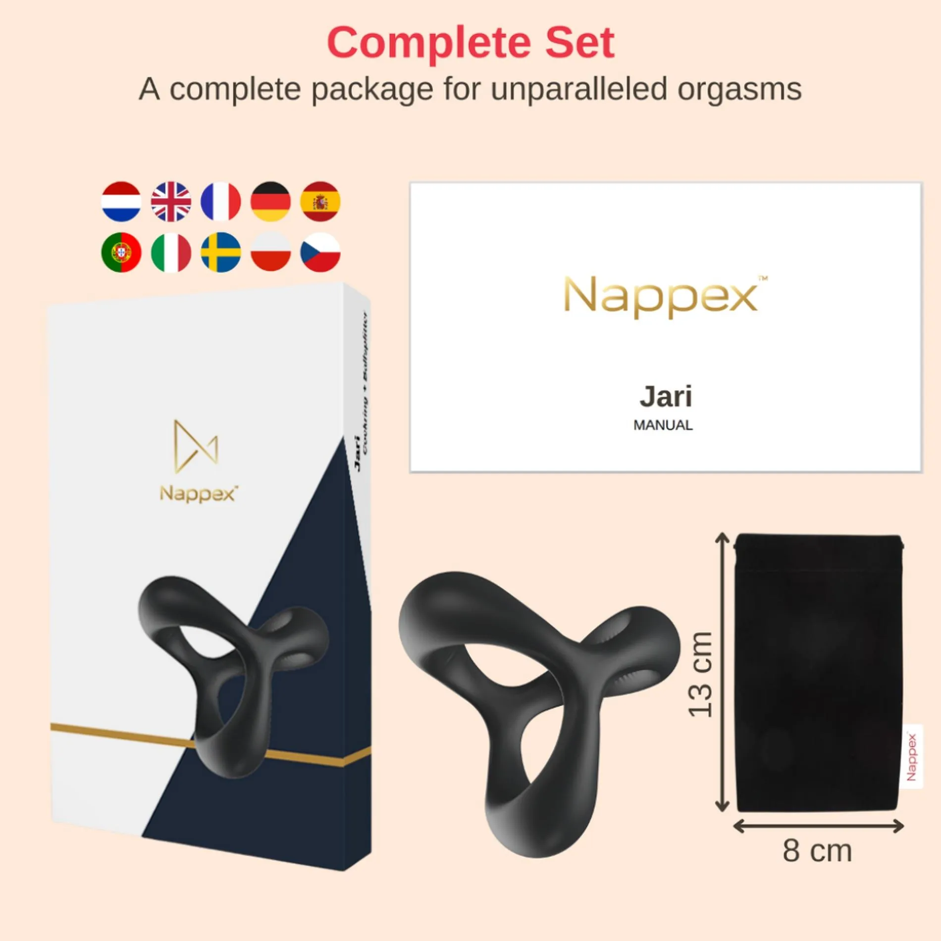 Dzięki specjalnym żebrom umieszczonym wewnątrz, pierścień pewnie otacza ciało, co poprawia stabilność i komfort użytkowania. Zmiana cyrkulacji krwi, jaką umożliwia Jari, sprawia, że Twoja erekcja staje się bardziej wytrzymała, a ejakulacja opóźniona. Efekt? Zaskakujące doznania, które przyniosą radość zarówno Tobie, jak i Twojemu partnerowi. Z pierścieniem Nappex™ Jari odkryjesz granice przyjemności i zrozumiesz, co to znaczy prawdziwa satysfakcja!
