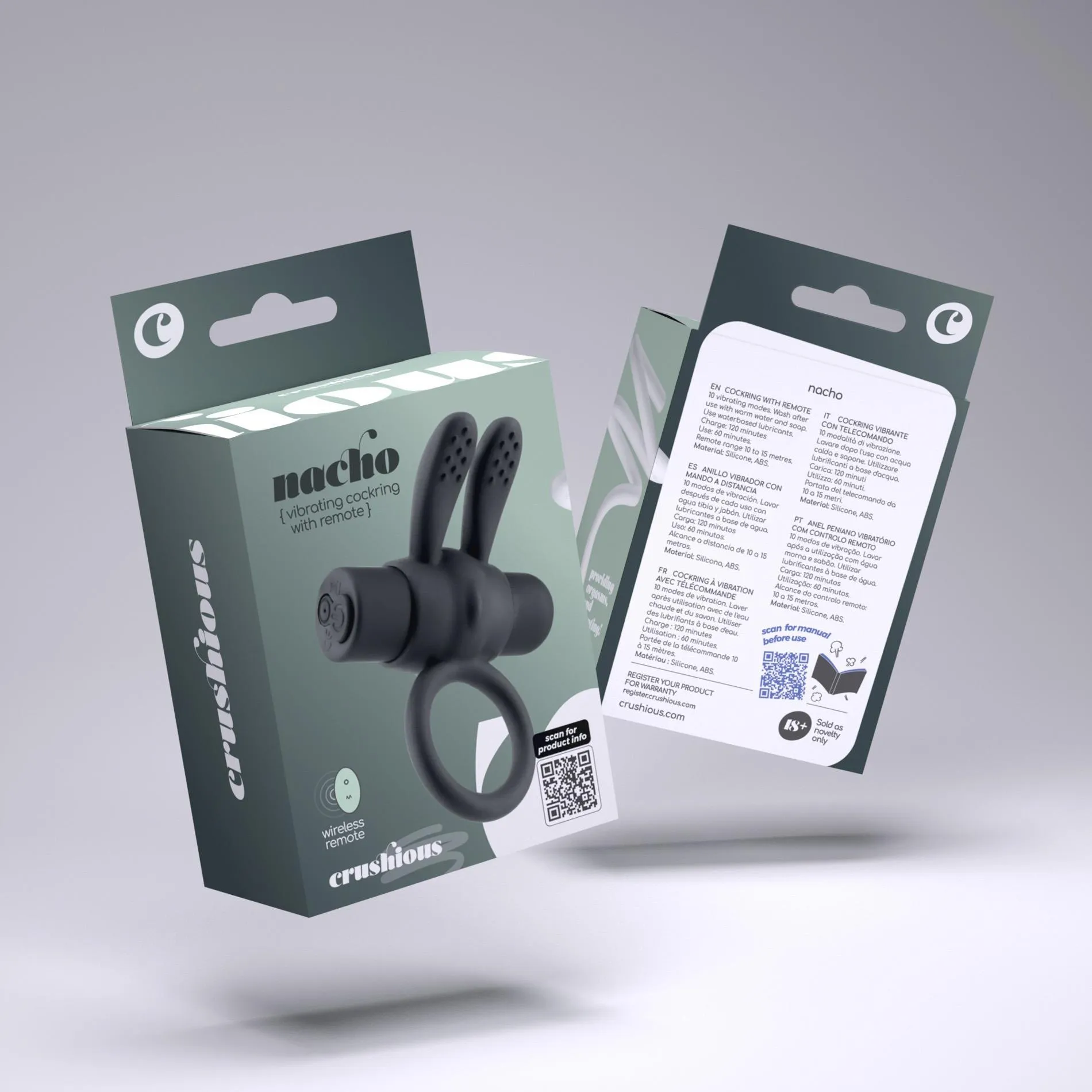Zarządzanie urządzeniem jest proste za pomocą zdalnego pilota, który również zawiera baterię CR2032 w zestawie. Doświadcz nowego poziomu przyjemności i pozwól sobie na długie chwile rozkoszy z pierścieniem CRUSHIOUS Nacho.
