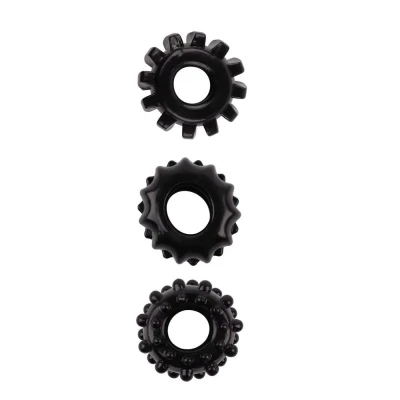 Zestaw 3 elastycznych pierścieni erekcyjnych o różnorodnych fakturach - czarny