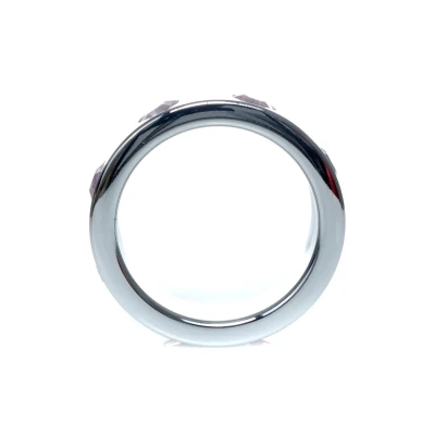 Ekskluzywny pierścień metalowy z różowymi diamentami, duży, dla intensywniejszych doznań.