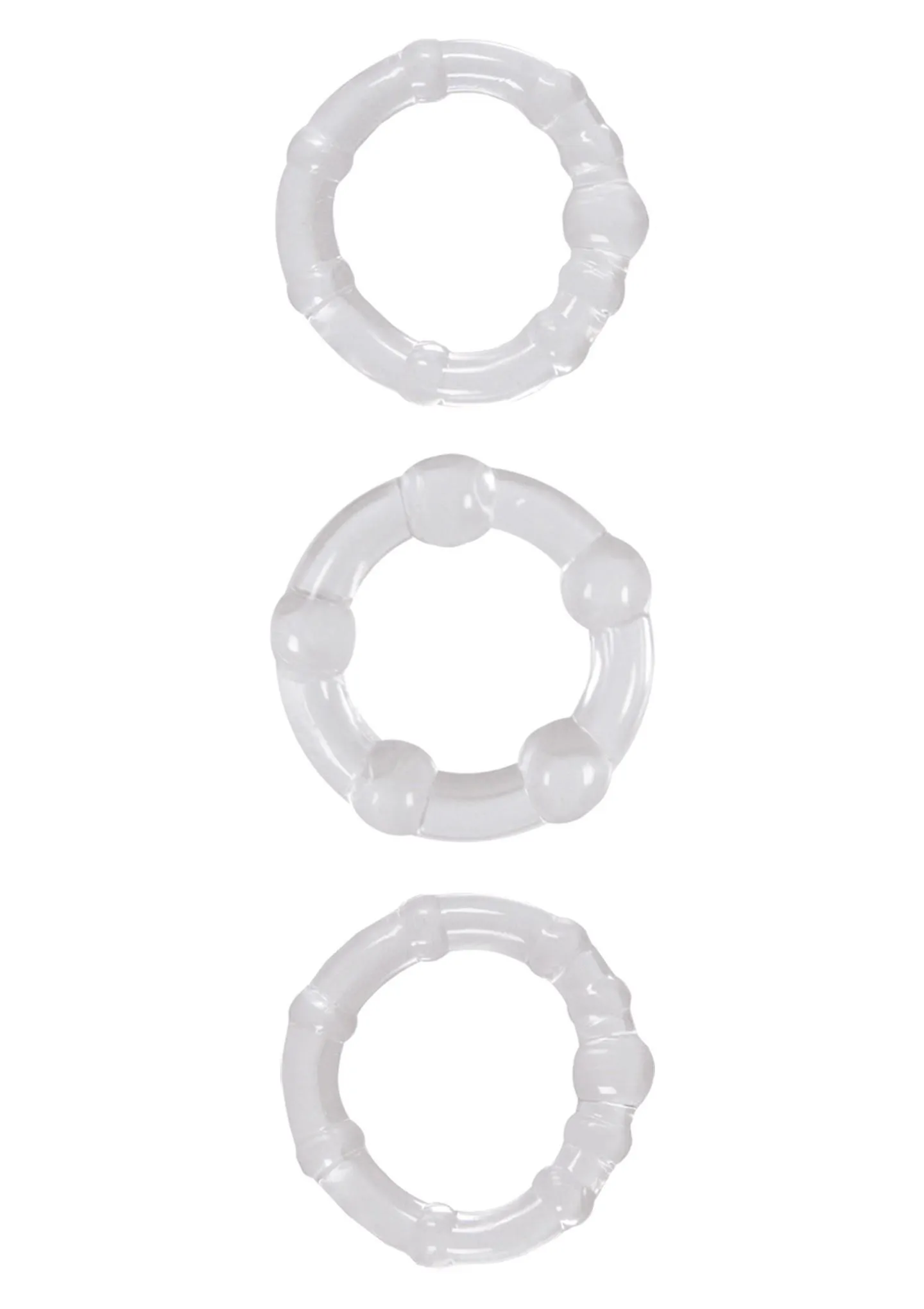 Każdy z pierścieni ma inny rozmiar, co pozwala na dostosowanie ich do indywidualnych potrzeb. Napinając pierścień u nasady penisa w trakcie wzwodu, użytkownik może efektywnie utrzymywać erekcję oraz cieszyć się dłuższym czasem intymnych uniesień. Wymiary zewnętrzne pierścieni to 3.0 cm, 3.3 cm i 3.6 cm (odpowiednio 1.2 inch, 1.3 inch, 1.4 inch), co zapewnia szeroki wachlarz możliwości dla różnorodnych preferencji.