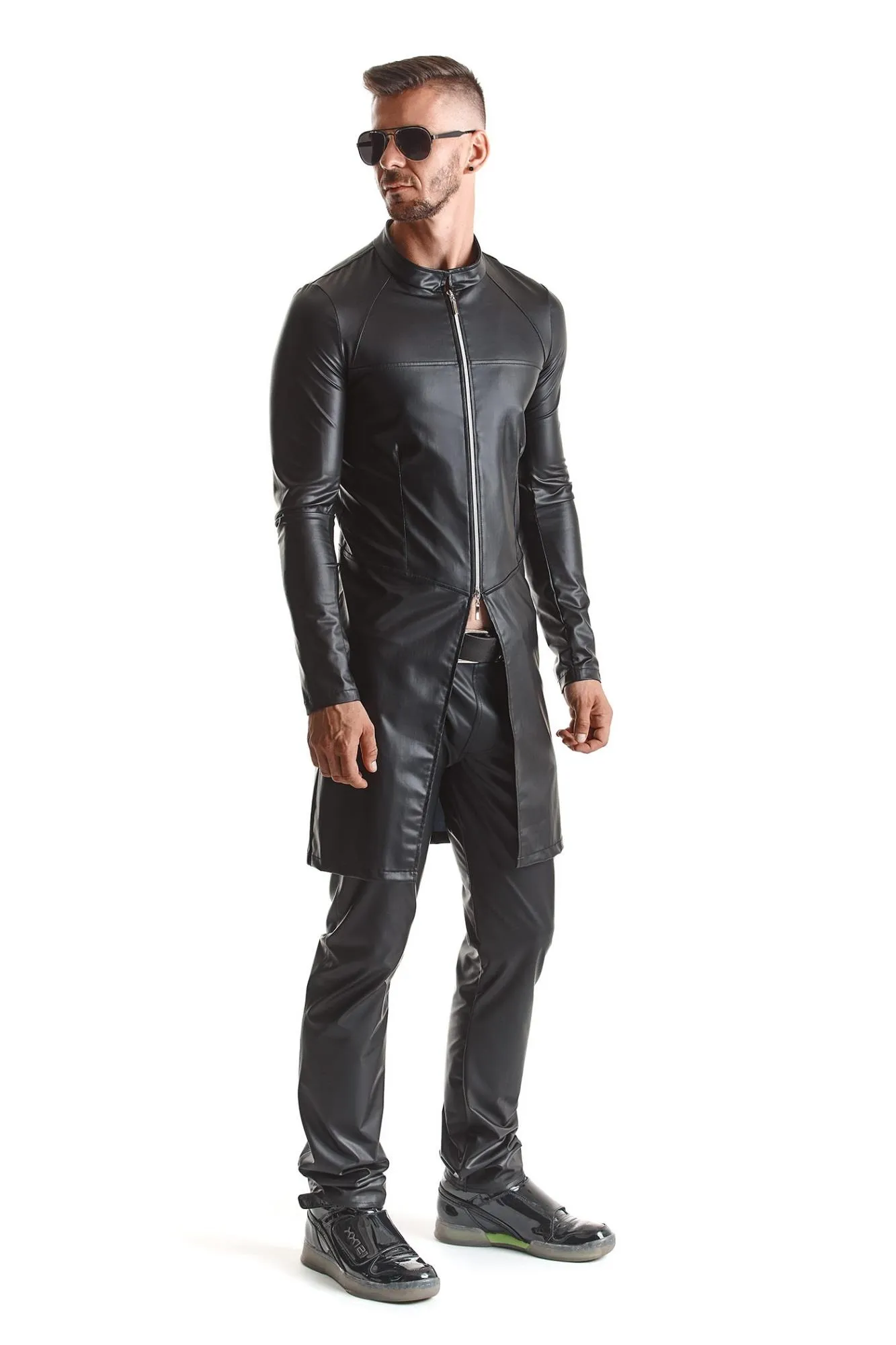 Płaszcz RMMario001 doskonale sprawdzi się na wyrafinowanych imprezach fetyszowych, a także w codziennych stylizacjach. Jego elastyczne dopasowanie gwarantuje wygodę, a czarny kolor sprawia, że jest on niezwykle uniwersalny. Wybierając ten model, inwestujesz w jakość oraz nieprzeciętny styl.