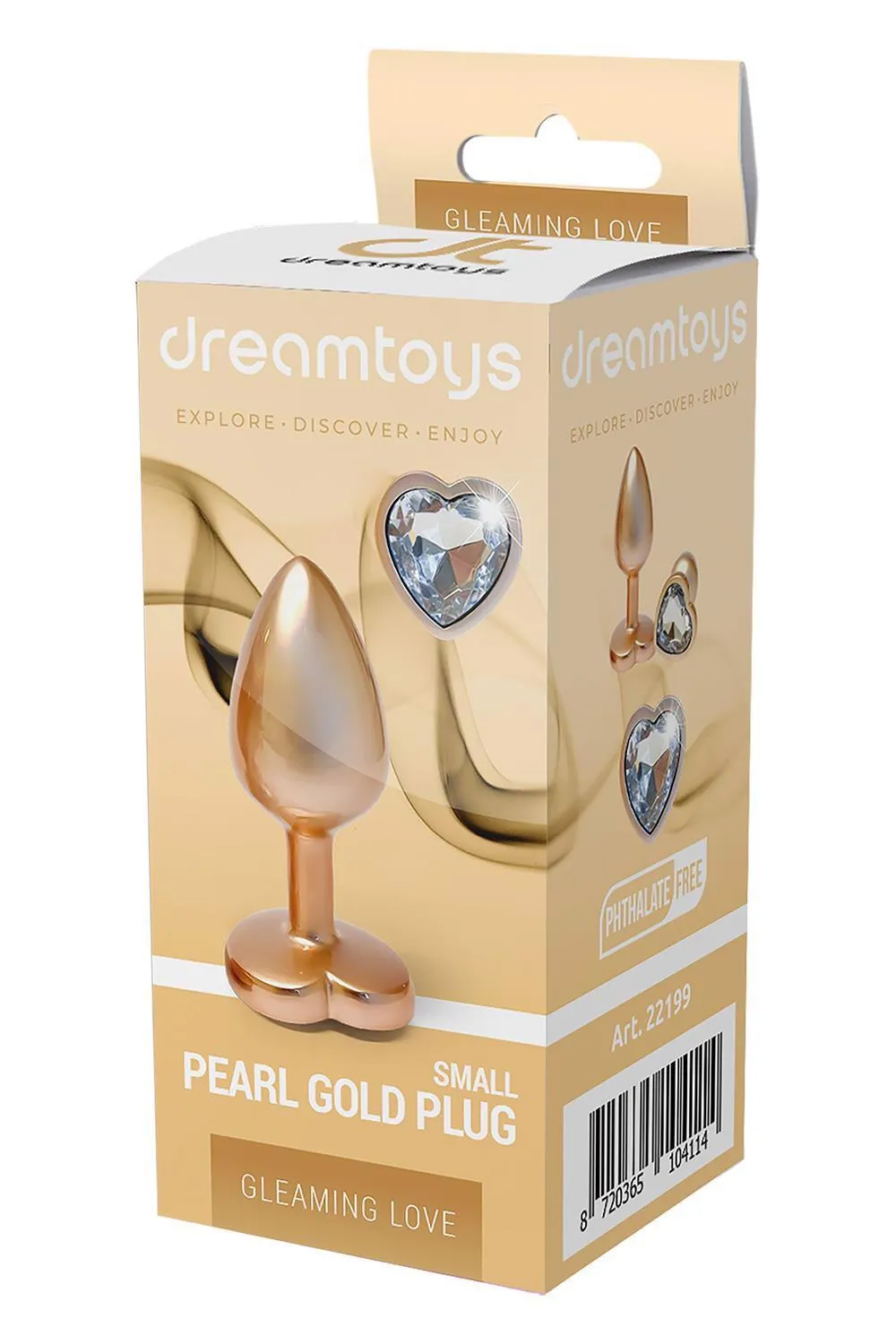 Gleaming Love to kolekcja, która wprowadza na rynek niewielki, ale niezwykle elegancki analny plug. Wykonany z aluminium w pięknym złotym kolorze, ten mały dodatek do zabaw intymnych łączy w sobie estetykę oraz funkcjonalność. Pokryty perłowym wykończeniem, plug zachwyca subtelnością i delikatnym sercem z kamienia szlachetnego, które dodaje mu wyjątkowego uroku.