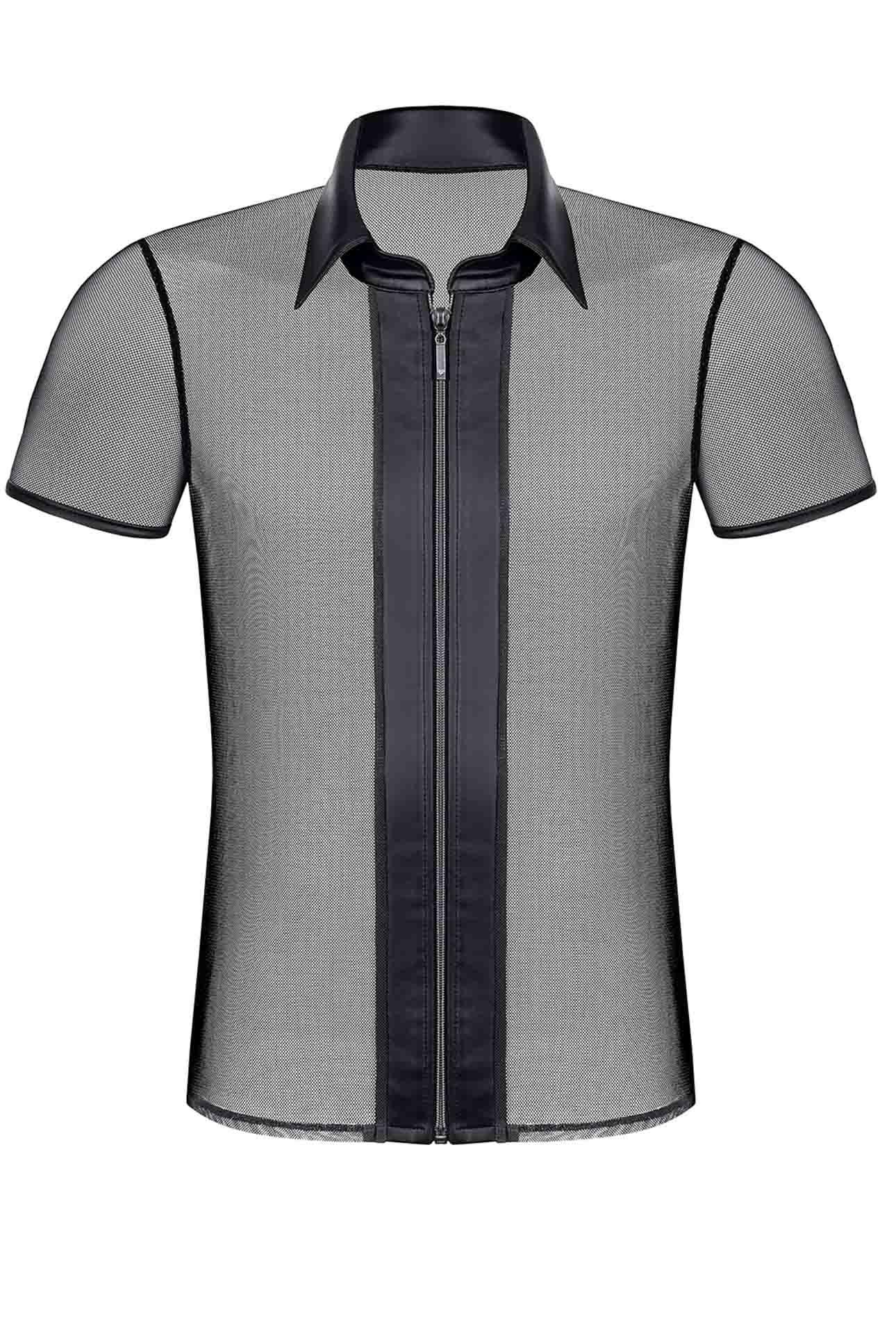 Polo REGNES FETISH PLANET — przezroczysta siateczka, wetlook, zamek RFP to nowoczesna koszulka zaprojektowana z myślą o wyrazistym, a jednocześnie eleganckim wyglądzie. Wykonana z wysokiej jakości tkaniny: 95% poliester, 5% elastan, co zapewnia trwałość, elastyczność i komfort noszenia. Przezroczysta siateczka subtelnie eksponuje sylwetkę, a zastosowanie dodatku elastanu gwarantuje odpowiednie dopasowanie i swobodę ruchów.