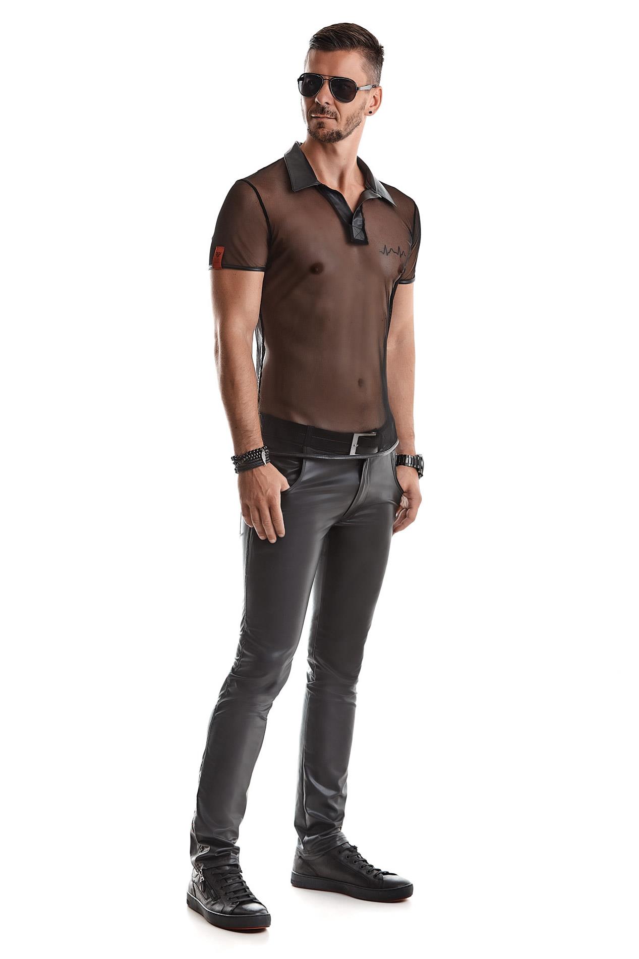 Nowoczesna koszulka polo REGNES FETISH PLANET w rozmiarze L została wykonana z wysokiej jakości dzianiny: 95% poliester / 5% elastan, co zapewnia doskonałe połączenie trwałości, elastyczności i komfortu noszenia. Transparentna siateczka materiału subtelnie eksponuje sylwetkę, jednocześnie zachowując lekkość i przewiewność, dzięki czemu produkt sprawdzi się zarówno w stylizacjach wieczorowych, jak i jako odważny element codziennego looku.