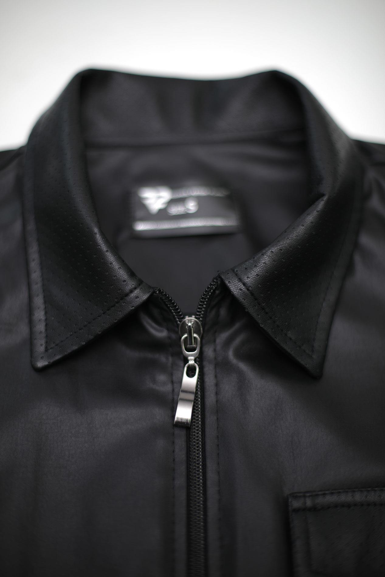 Polo REGNES FETISH PLANET — wetlook czarne, dwukierunkowy zamek, 4XL to nowoczesna koszulka łącząca elegancki krój z wyrazistym, zdecydowanym wykończeniem. Wykonana z tkaniny o składzie 95% poliester / 5% elastan, zapewnia dopasowanie i lekki efekt połysku charakterystyczny dla wetlooku. Dwukierunkowy zamek z grawerowanym logo RFP Regnes Fetish Planet oraz perforowana kieszonka na piersi podkreślają loftowy, przemysłowy charakter modelu, zachowując jednocześnie funkcjonalność i komfort noszenia.